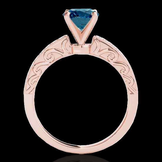 REF-180F2N -34618 ---- 1.43 CTW Si Certified Blue Diamond Solitaire Antique Ring 10K Rose Gold ---- Luxury Designer Brand Ring Appraised at $10,900 Certificate Number US34618 10k Rose gold, Ring Size is 7, Ring measuring approx. Uniform, weighing in total approx. 3.8 grams. Made in the USA and is stamped 10k, Main stone 1.25 carat total weight containing 1 pieces of Intense Fancy Blue color with SI quality Round shape cut Diamond , Stone #2 0.18 carat total weight containing 18 pieces of H-I color with VS/SI quality Round shape cut Diamond