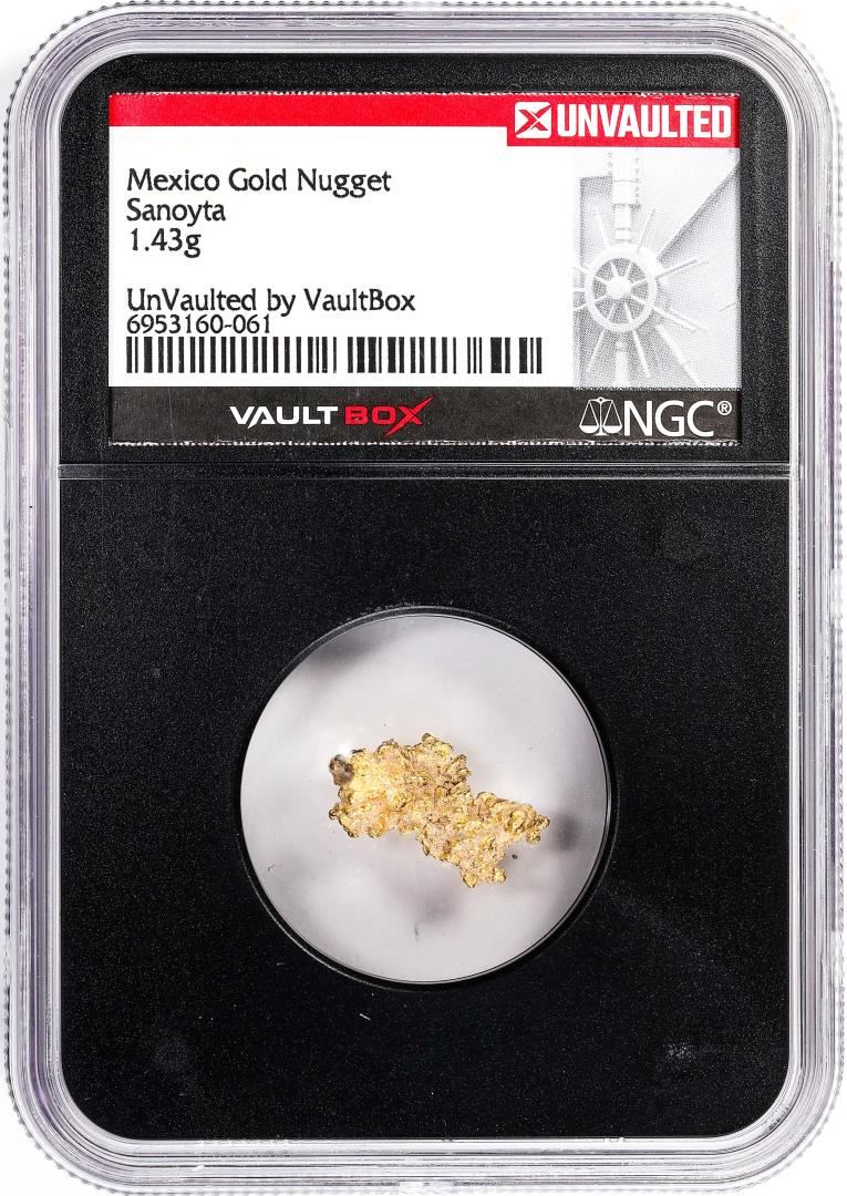 One 1.43 Gram Sanoyta Mexico Gold Nugget NGC Vaultbox Unvaulted. NGC Certified.