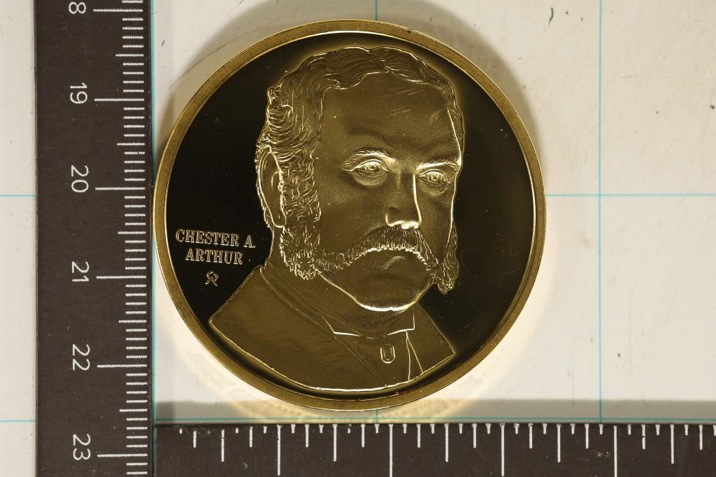 ROUND "CHESTER A.D. ARTHUR" IN HARD PLASTIC CAPSULE