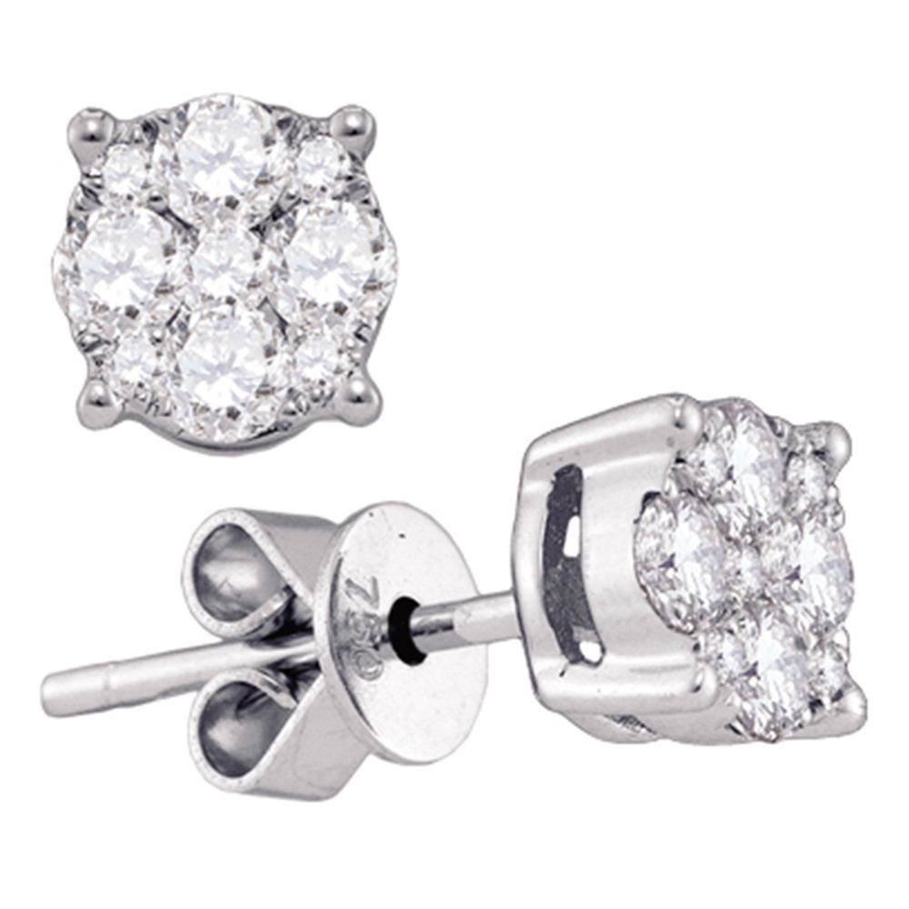 REF-277N4F- SKU: GD77358 ---- 1.44 CTW Diamond Cluster Stud Earrings 18KT White Gold
