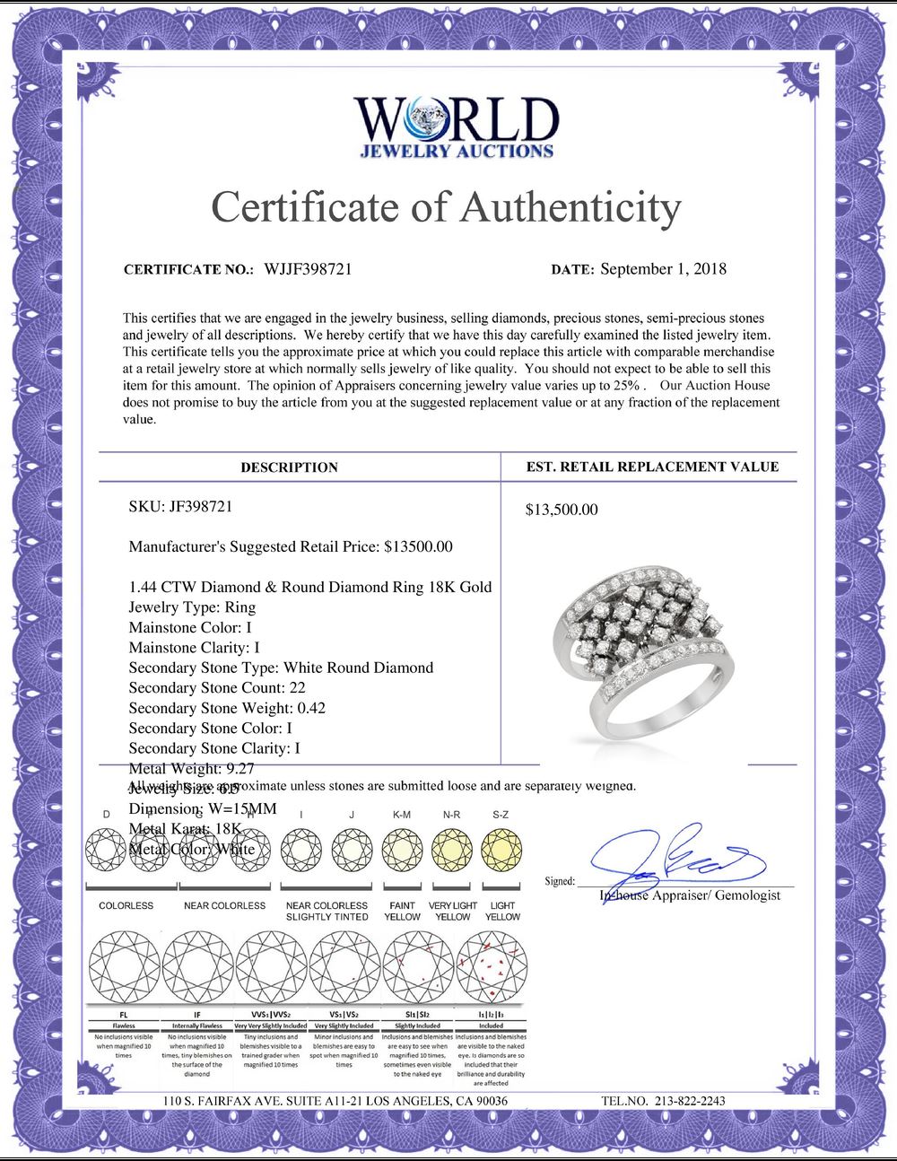 REF-179Y3X - JF398721 ---- 1.44 CTW White Round Diamond Ring 18K White Gold