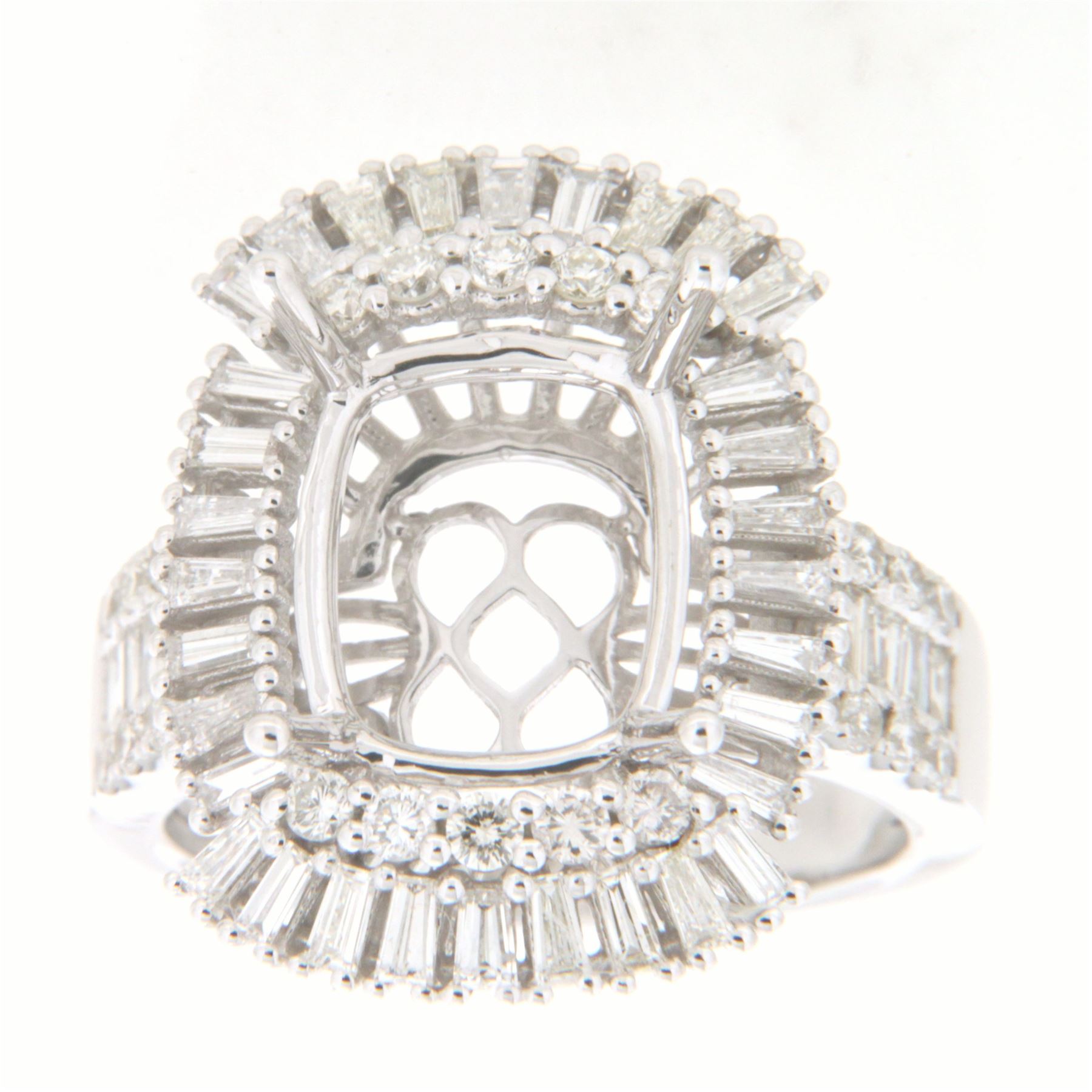 REF-158M3F - JF414551 ---- 1.44 CTW White Round Diamond & Baguette Semi Mount Ring 14K White Gold