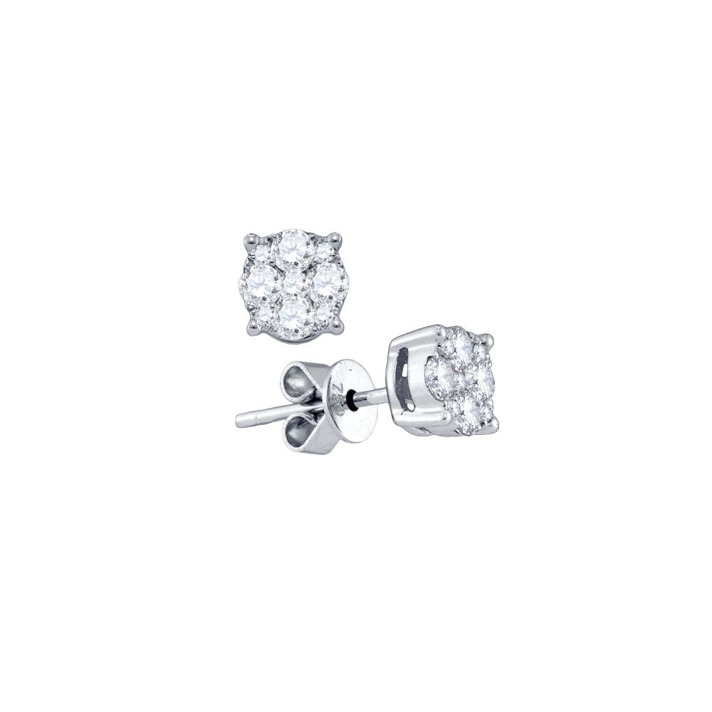 REF-369K9W ---- 1.44 CTW Natural Diamond Cluster Screwback Earrings 18K White Gold - SKU: GD77358