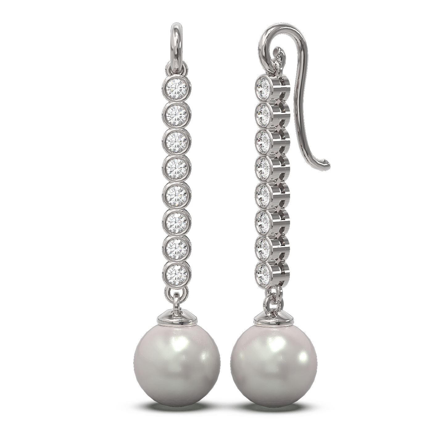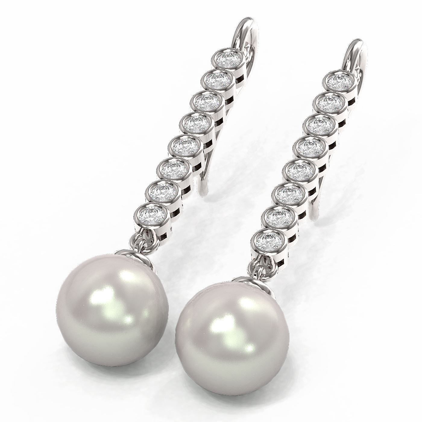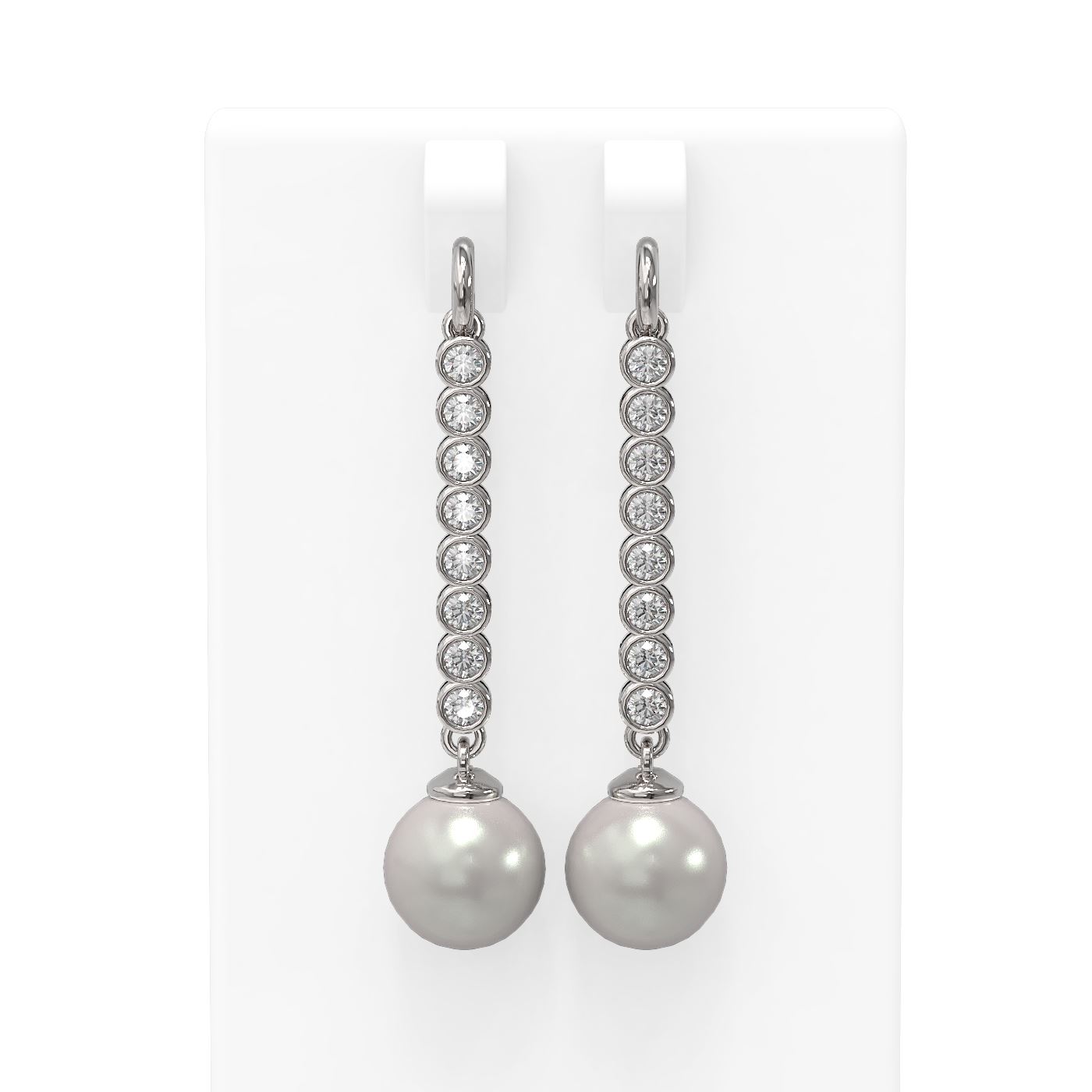 REF-162N9F - SKU: 55742 ---- 1.44 ctw Diamond & Pearl Earrings 18K White Gold