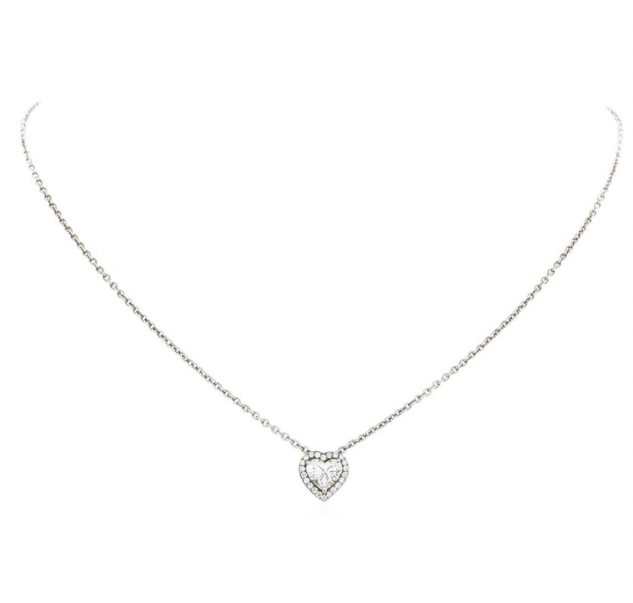One electronically tested platinum lady's combination cast & assembled fashion heart shape pendant & chain 16.0' long, 1.6mm oval cable link with a lobster claw clasp with a bright polish finish. Identified with markings of 'PT 950'. Condition is new, good workmanship. Containing: One prong set heart shaped cut diamond, measuring 7.20 x 6.50 x 4.48mm (depth est.) approximate weight of 1.24ct. Graded in the setting. Color I Clarity SI-1 Cut Good Twenty-Two prong set round brilliant cut diamonds, measuring 1.30 - 1.25 x 0.79mm (depth est.) approximate total weight of 22 Stones = 0.20ct. Graded in the setting. Color G - H Clarity VS-2 to SI-1 Cut Very Good. Total Weight of Diamonds 1.44ct.. Total Weight of Pendant & Chain 7.40gm GAS Appraised at $11540.00. GAS Appraised.