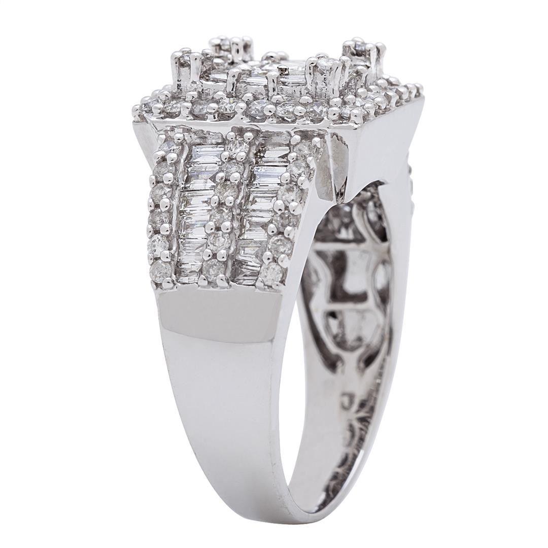 One lady's ring featuring: 14KT white gold weighing 6.23 grams containing round, pear cut and baguette cut diamonds weighing 1.44ctw.