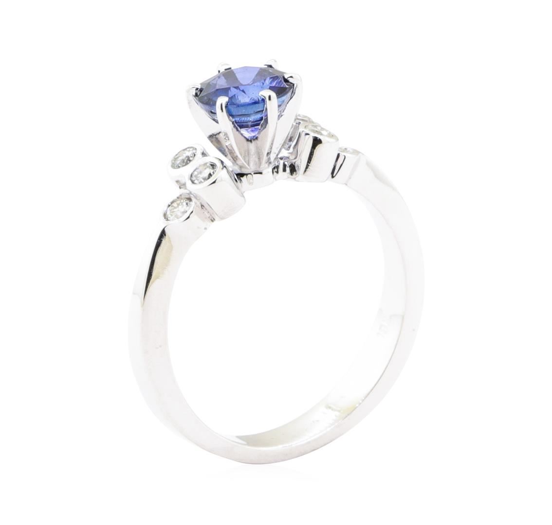 One ring featuring: 18KT white gold weighing 4.4 grams containing one sapphire weighing 1.14ct and diamonds weighing 0.30ctw.