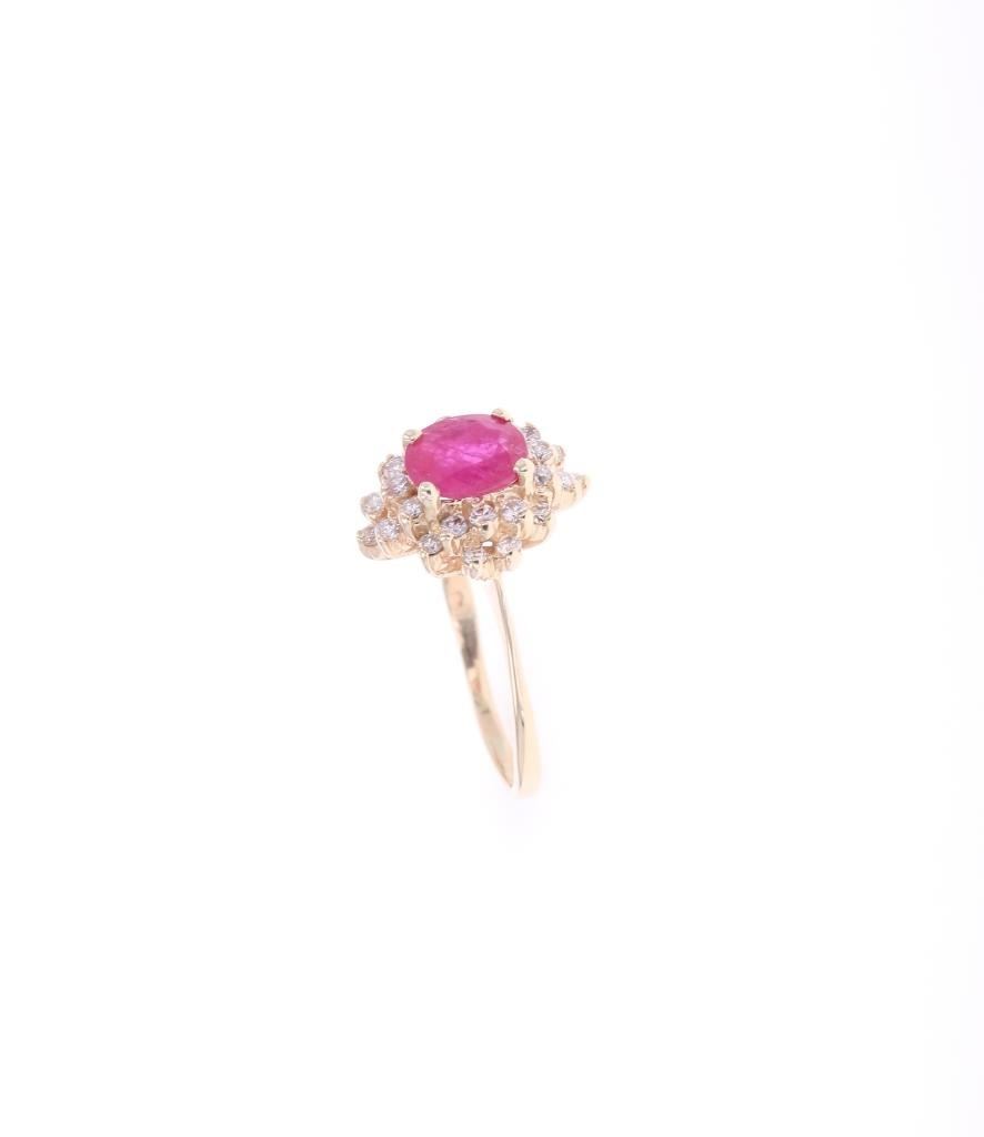 Featured in this lot is this 1.44ct ruby and VS2 diamond 14k yellow gold ring with AIGL paperwork. The ring features a polished, stamped, and tested 14k yellow gold construction and is marked '14k'. The center stone is a natural oval cut ruby with measurements of 8 x 7mm with red coloration and a very good cut grade that shows a total weight of 1.44ct. The center stone is decorated with a surrounding cluster of 26 round brilliant cut diamonds that shows measurements of 1.5mm with a clarity of VS2 - SI1 and shows a color grade of H - I and a total diamond weight of 0.40ct. The piece comes complete with AIGL Inc.(American International Gemological Laboratories, Inc. a GIA certified lab AIGL#: K27E31-EA21850) report and appraisal confirming the above info and giving a total value of $8,200.00. The ring size is US 9.
