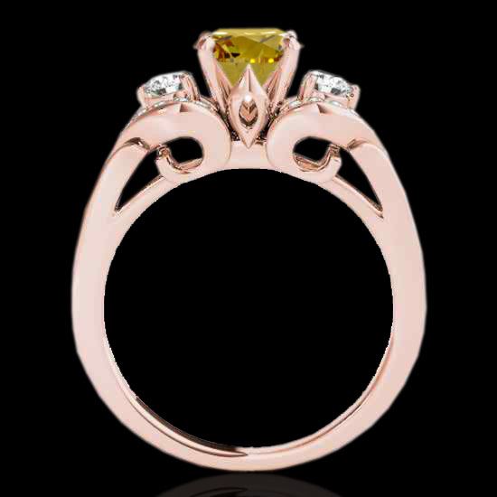 REF-180W2F -35339 ---- 1.45 CTW Certified Si/I Fancy Intense Yellow Diamond 3 Stone Ring 10K Rose Gold ---- Luxury Designer Brand Ring Appraised at $11,900 Certificate Number US35339 10k Rose gold, Ring Size is 7, Ring measuring approx. Uniform, weighing in total approx. 4.8 grams. Made in the USA and is stamped 10k, Main stone 1 carat total weight containing 1 pieces of Intense Fancy Yellow color with SI quality Round shape cut Diamond , Stone #2 0.45 carat total weight containing 24 pieces of H-I color with VS/SI quality Round shape cut Diamond