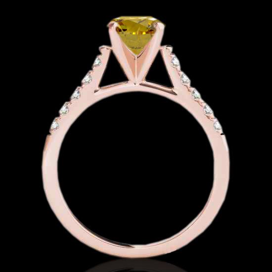 REF-163W5F -34987 ---- 1.45 CTW Certified Si/I Fancy Intense Yellow Diamond Solitaire Ring 10K Rose Gold ---- Luxury Designer Brand Ring Appraised at $10,800 Certificate Number US34987 10k Rose gold, Ring Size is 7, Ring measuring approx. Uniform, weighing in total approx. 4.5 grams. Made in the USA and is stamped 10k, Main stone 1 carat total weight containing 1 pieces of Intense Fancy Yellow color with SI quality Round shape cut Diamond , Stone #2 0.45 carat total weight containing 14 pieces of H-I color with VS/SI quality Round shape cut Diamond