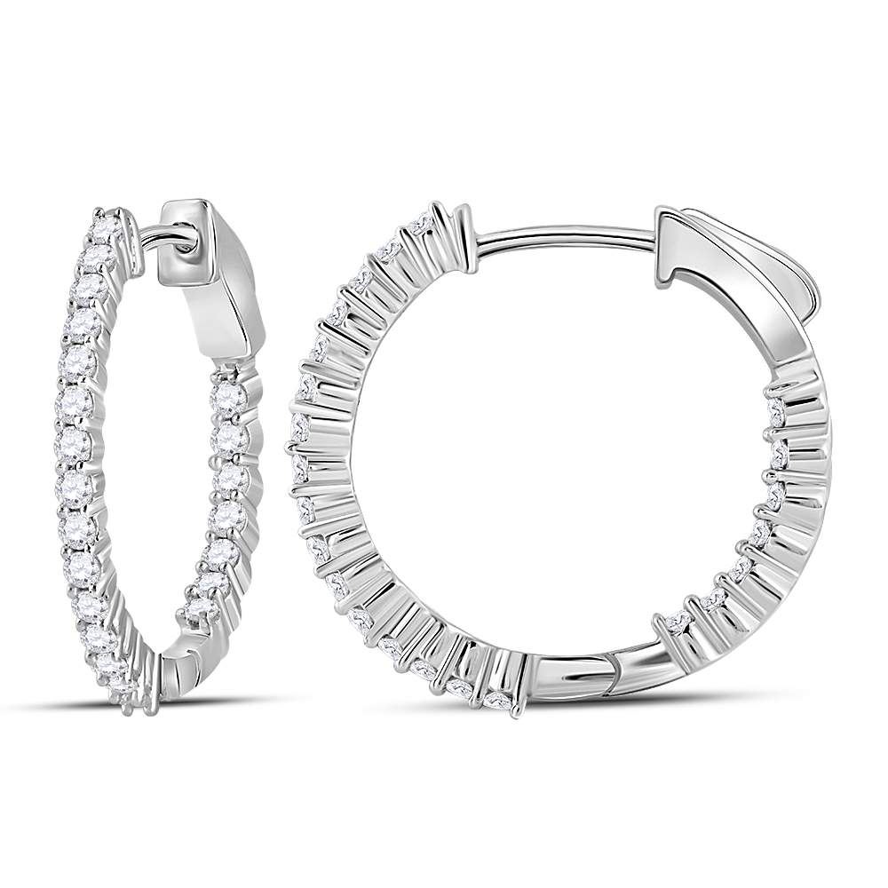 REF-101F2N- SKU: GD111882 ---- 1.45 CTW Diamond Single Row Hoop Earrings 10KT White Gold