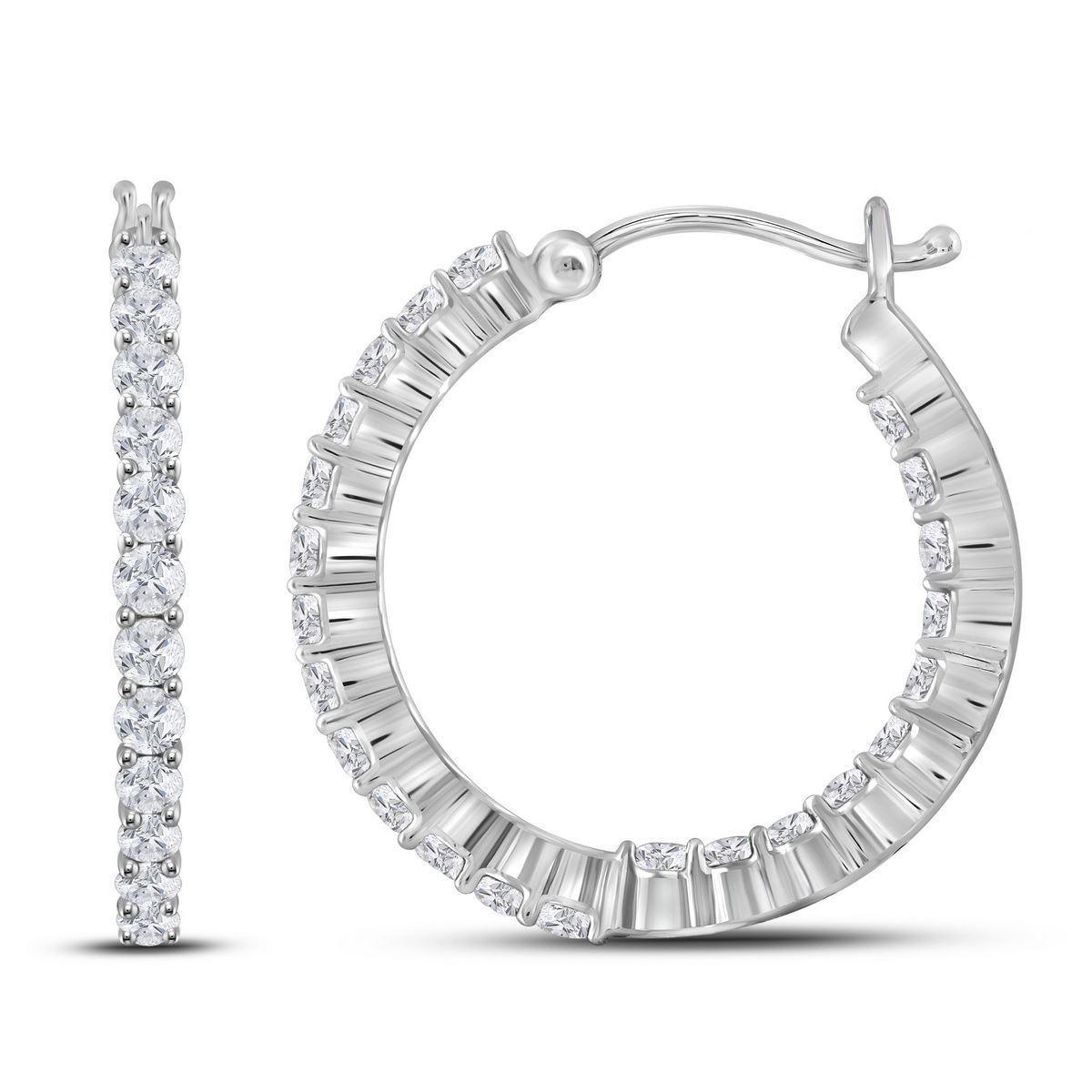 REF-129M9A ---- 1.45 CTW Natural Diamond Hoop Earrings 10K White Gold - SKU: GD111882