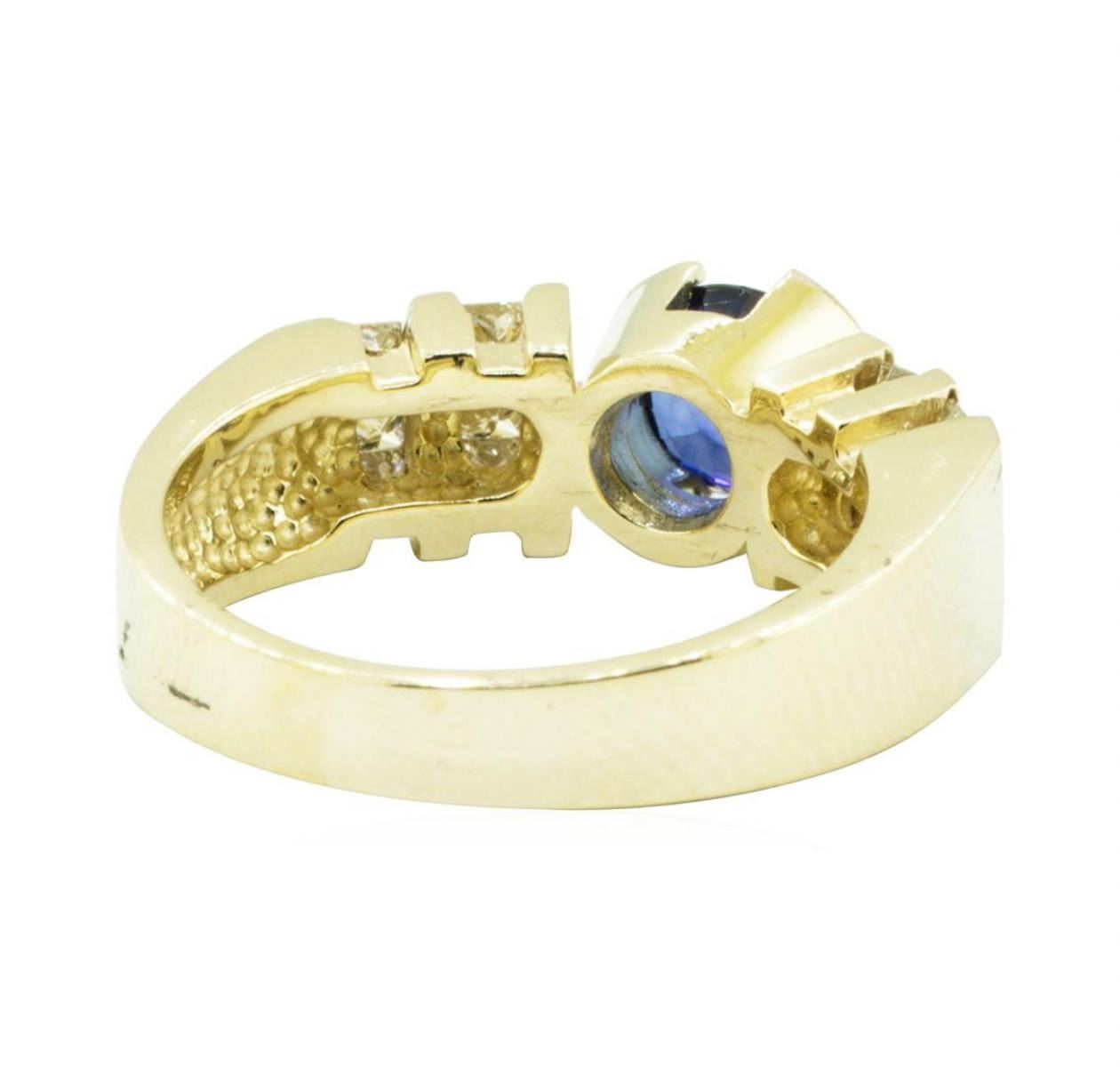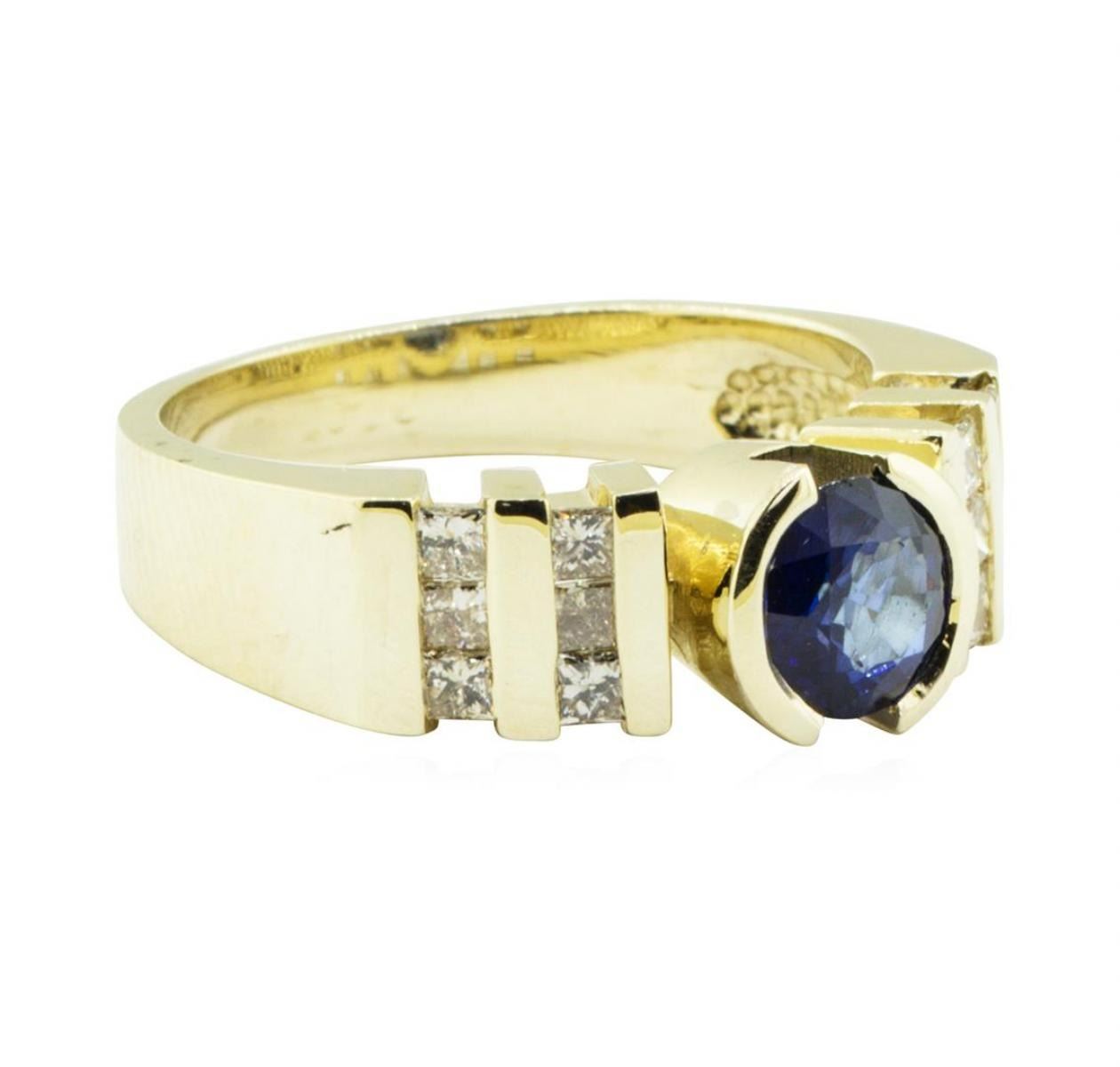 One ring featuring: 14KT yellow gold weighing 7.5 grams containing one blue sapphire weighing 0.95ctw and diamonds weighing 0.50 ctw.
