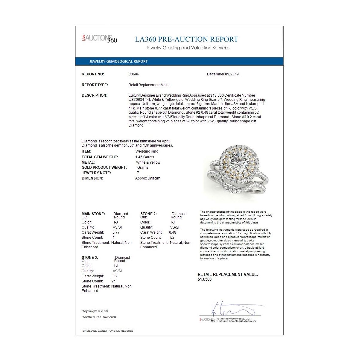 REF-184G3W - SKU: 30684 ---- 1.45 ctw Certified VS/SI Diamond 2pc Set Solitaire Halo 14k White & Yellow Gold