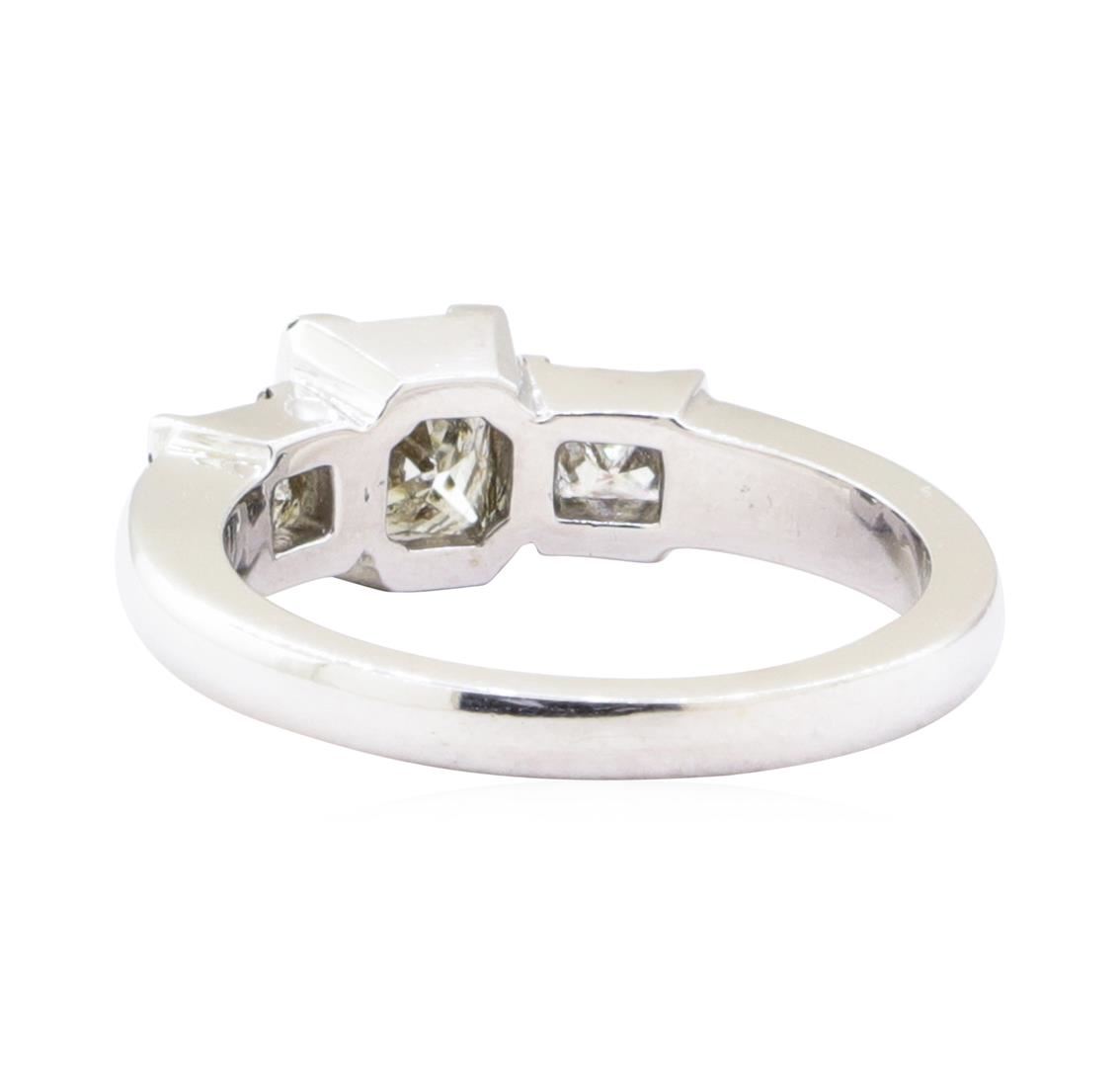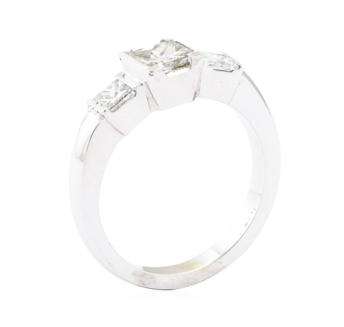 One electronically tested 14KT white gold lady's cast fashion ring with a three stone channel motif with a bright polish finish. The featured lady's ring has a shank measuring 2.30 millimeters wide. Identified with markings of '14K'. Condition is new, goo