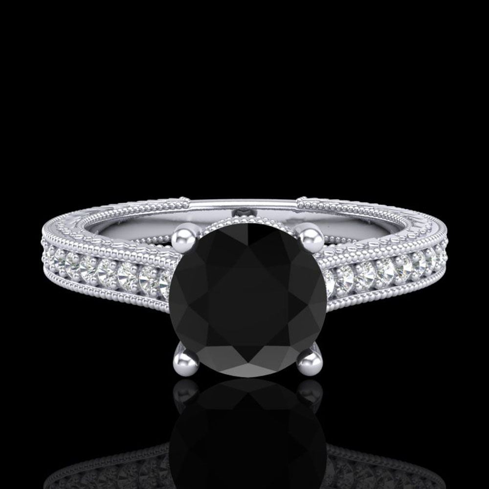 REF-109G3W - SKU: 37751 ---- 1.45 ctw Fancy Black Diamond Engagment Art Deco Ring 18k White Gold