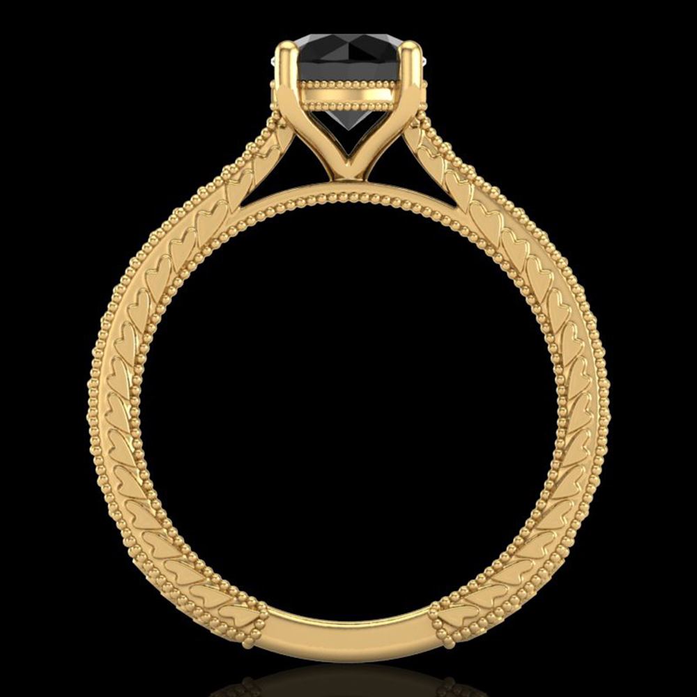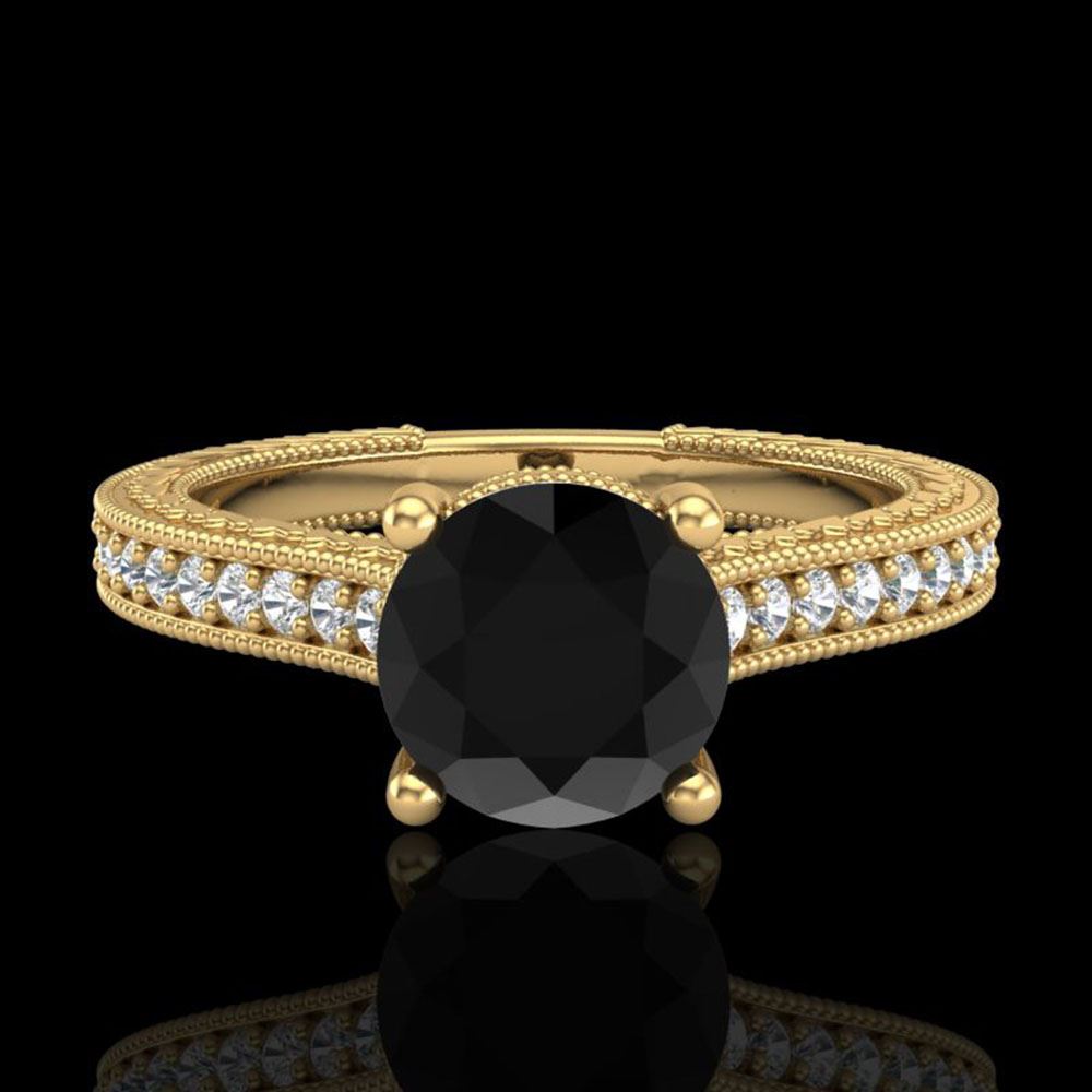 REF-109K3Y - SKU: 37753 ---- 1.45 ctw Fancy Black Diamond Engagment Art Deco Ring 18k Yellow Gold