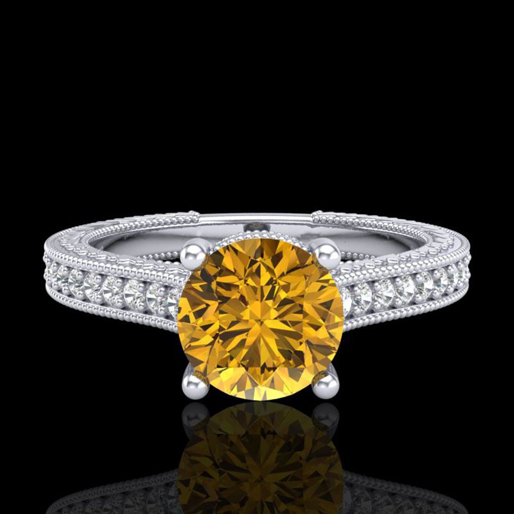 REF-290K9Y - SKU: 37756 ---- 1.45 ctw Intense Fancy Yellow Diamond Art Deco Ring 18k White Gold
