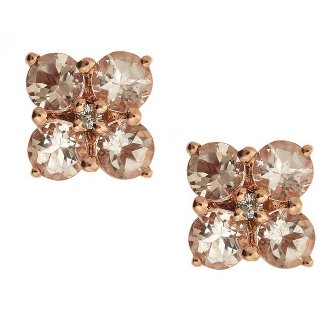 One pair of Earrings featuring: 14KT Rose Gold weighing 1.9 grams containing Morganite with an approximate weight of 1.45ct, Diamond with an approximate weight of 0.02ct, and with an approximate weight of ct.