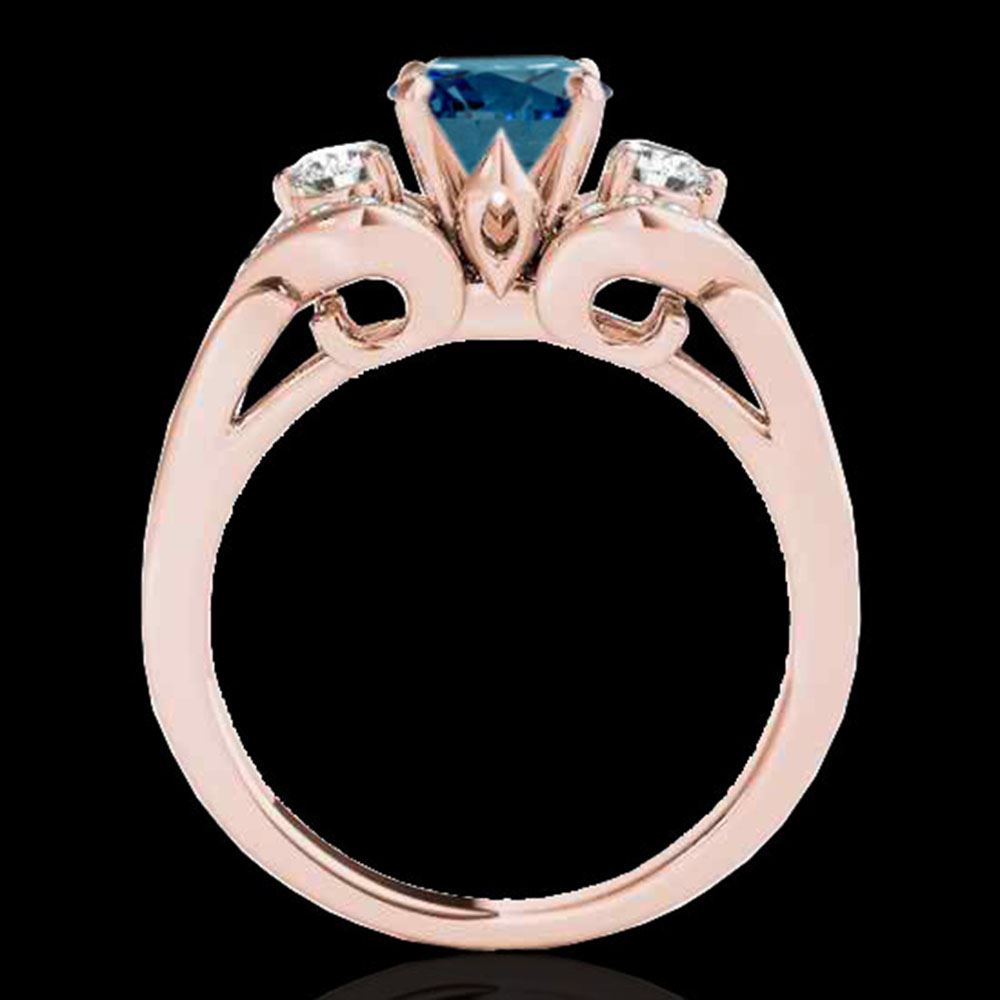 REF-150M2G - SKU: 35337 ---- 1.45 ctw SI Certified Fancy Blue Diamond 3 Stone Ring 10k Rose Gold