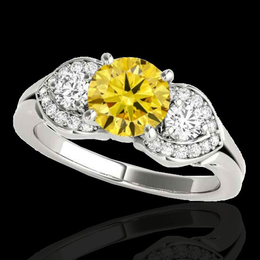 REF-204Y5X - SKU: 35338 ---- 1.45 ctw SI/I Fancy Intense Yellow Diamond 3 Stone Ring 10k White Gold