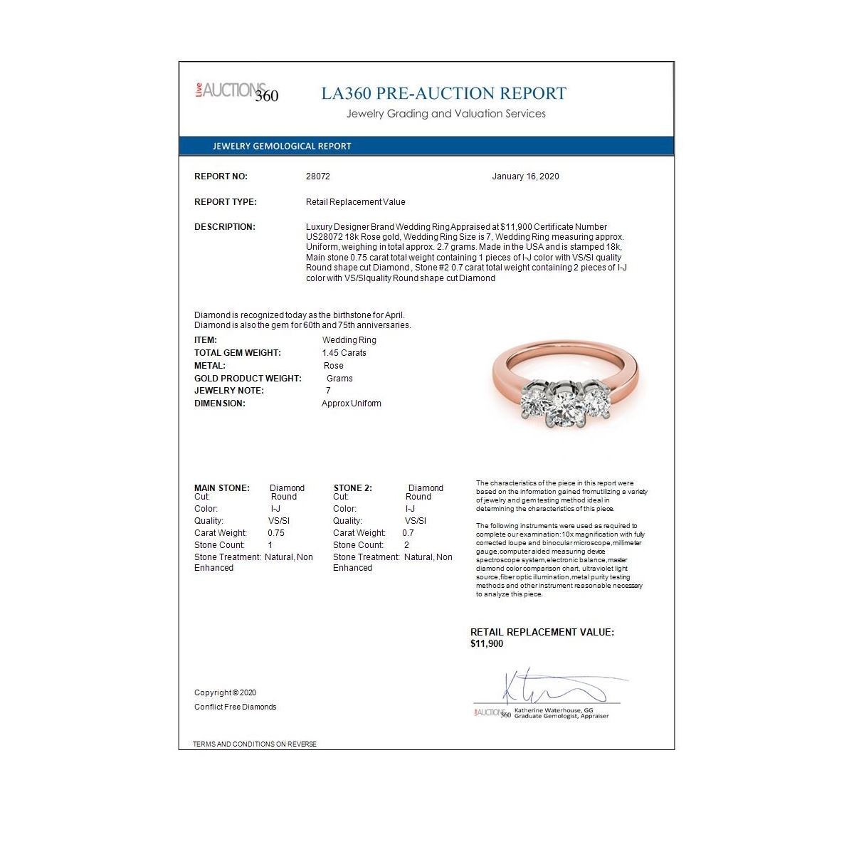 REF-180W2H - SKU: 28072 ---- 1.45 ctw VS/SI Diamond 3 Stone Ring 18k Rose Gold