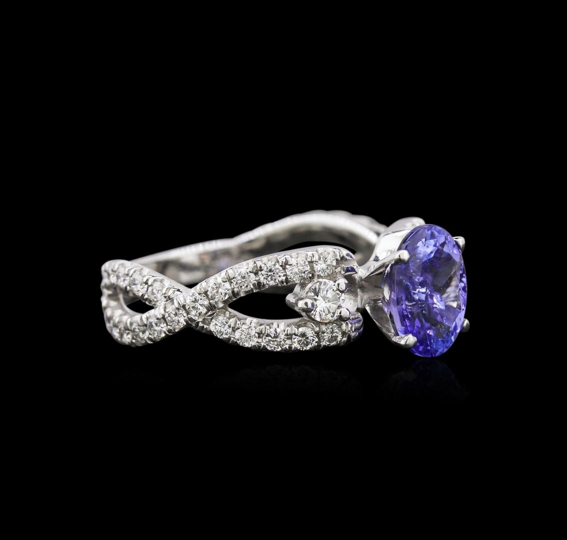 One ring featuring: platinum weighing 5.85 grams containing one tanzanite center stone with a total weight of 1.45ct and diamonds with a total weight of 0.80ct.