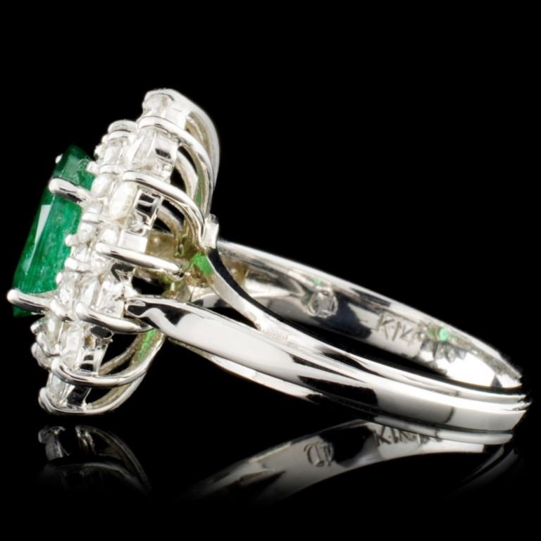 Estimated Retail Replacement Value: $10,500.00Ref: WAG5000Item no.: ARA7018Specification:Gold Content: Solid 14K White Gold Weight of Item: 5.25 gramsSize: 6.5Country Made: U.S.A Main Gemstone: Natural Emerald Shape: Oval-shapeQuantity: 1Total Carat Weight: 1.60ctColor: GreenClarity: Type 2 Cut Grade: Very Good Adjacent Gemstone: Natural Diamond Shape: Round Brilliant-cut Quantity: 28 countsTotal Carat Weight: 1.45ctwClarity Grade: SI1 - SI2Color Grade: G – H Hardness: 10 Great Condition - Shipping notes: We ship 4-10 Business day after the clearance of payment. Tracking numbers are emailed once the package(s) are shipped. Most shipments are sent by FEDEX Priority, UPS Priority, or US PRIORITY MAIL INSURED