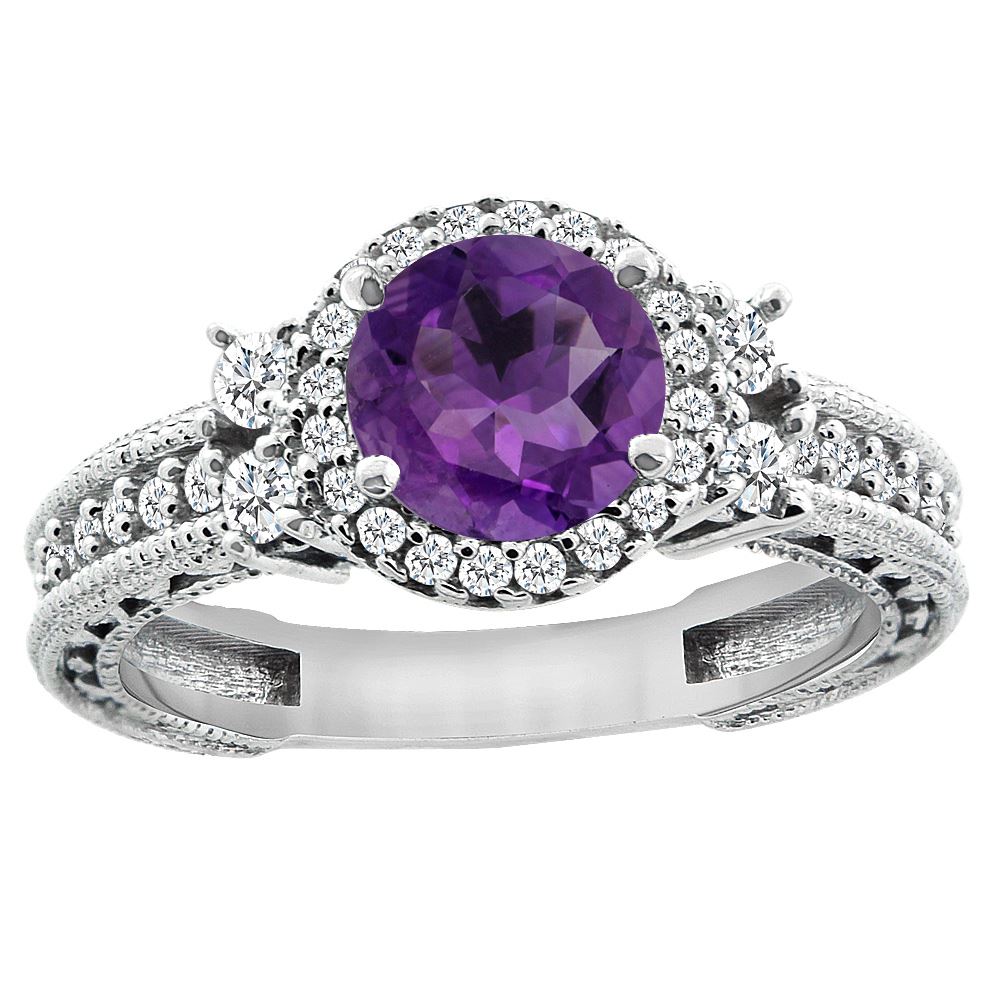 REF-77M4A - SKU: SC-CW401297 ---- 1.46 CTW Amethyst & Diamond Ring 14K White Gold