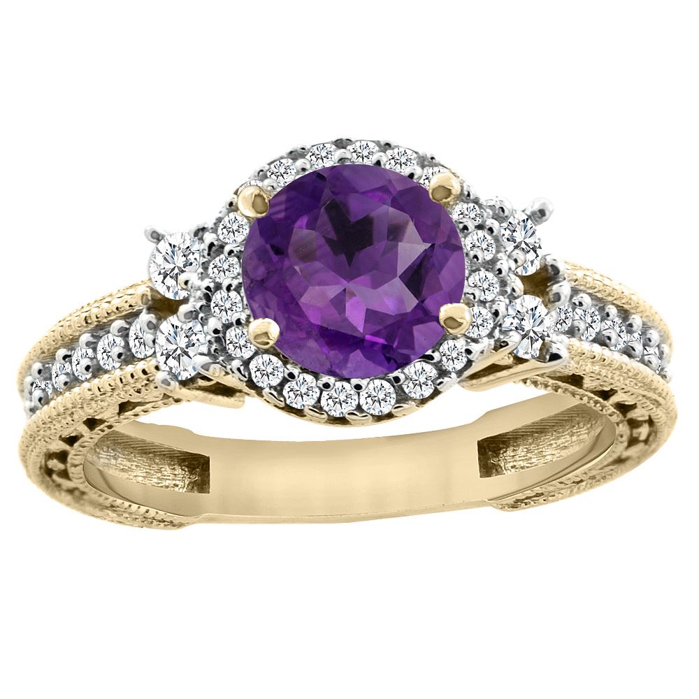 REF-77F4N - SKU: SC-CY401297 ---- 1.46 CTW Amethyst & Diamond Ring 14K Yellow Gold