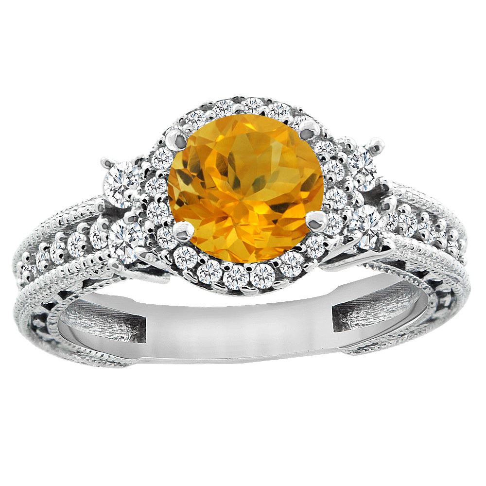 REF-77A4X - SKU: SC-CW409297 ---- 1.46 CTW Citrine & Diamond Ring 14K White Gold