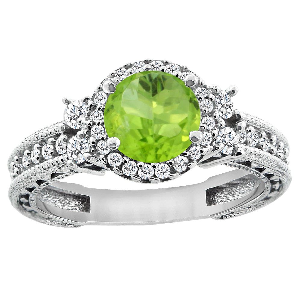 REF-77K8W - SKU: SC-CW411297 ---- 1.46 CTW Peridot & Diamond Ring 14K White Gold