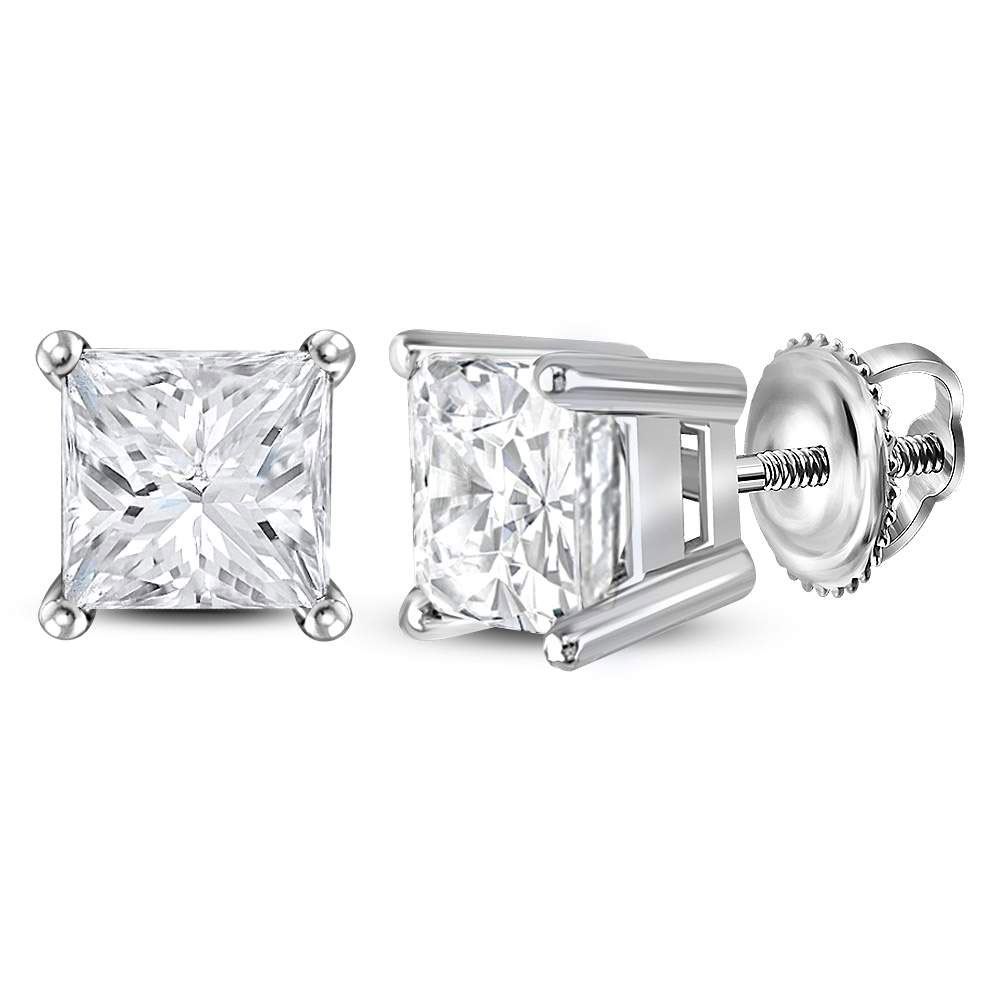 REF-307W4K- SKU: GD19427 ---- 1.46 CTW Princess Diamond Solitaire Stud Earrings 14KT White Gold