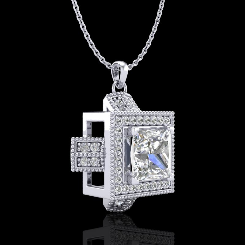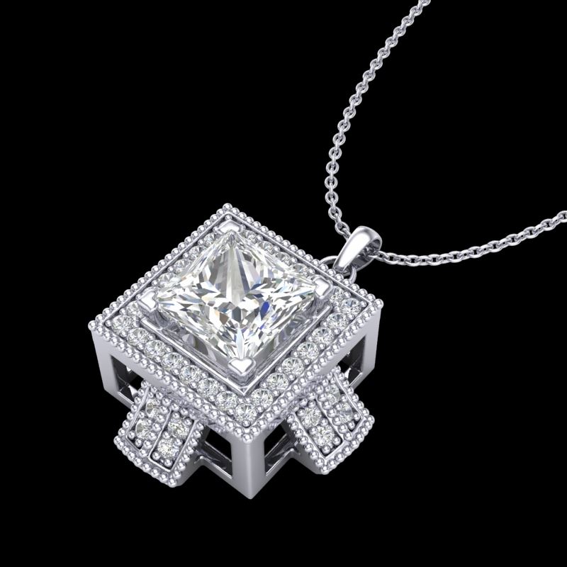 REF-418W2F -37193 ---- 1.46 CTW Princess VS/SI Diamond Solitaire Micro Pave Necklace 18K White Gold ---- Luxury Designer Brand NECKLACE Appraised at $20,700 Certificate Number US37193 18k White gold, NECKLACE Size is 16 Inches, NECKLACE measuring approx. Uniform, weighing in total approx. 5 grams. Made in the USA and is stamped 18k, Main stone 1.06 carat total weight containing 1 pieces of H-J color with VS/SI quality Princess shape cut Diamond , Stone #2 0.4 carat total weight containing 44 pieces of H-I color with VS/SI quality Round shape cut Diamond