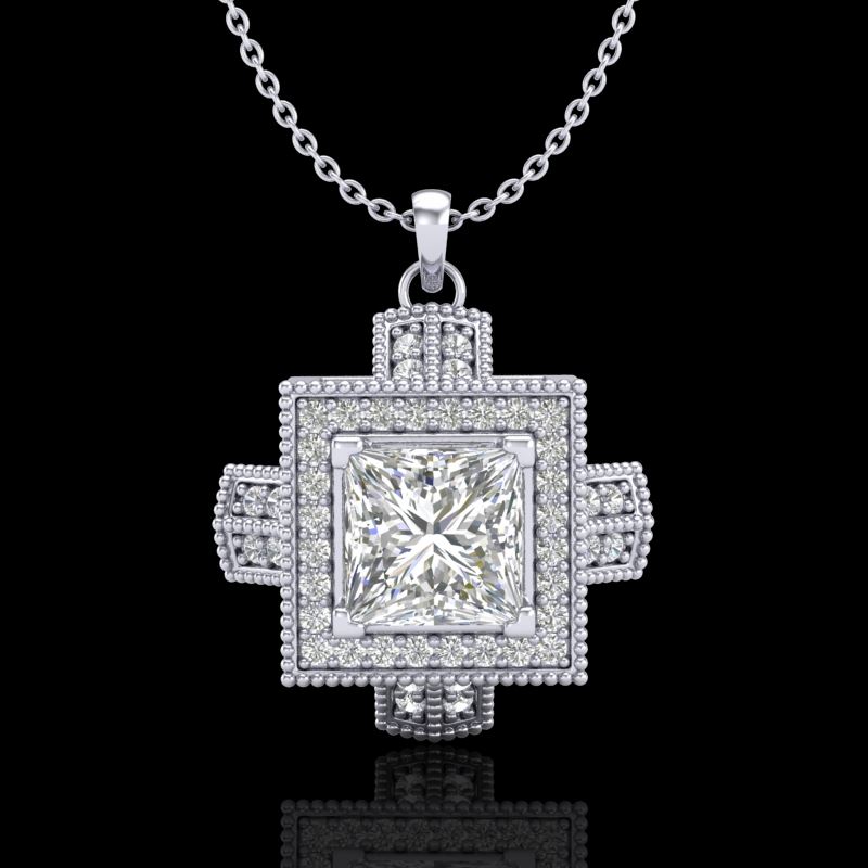 REF-418W2F -37193 ---- 1.46 CTW Princess VS/SI Diamond Solitaire Micro Pave Necklace 18K White Gold ---- Luxury Designer Brand NECKLACE Appraised at $20,700 Certificate Number US37193 18k White gold, NECKLACE Size is 16 Inches, NECKLACE measuring approx. Uniform, weighing in total approx. 5 grams. Made in the USA and is stamped 18k, Main stone 1.06 carat total weight containing 1 pieces of H-J color with VS/SI quality Princess shape cut Diamond , Stone #2 0.4 carat total weight containing 44 pieces of H-I color with VS/SI quality Round shape cut Diamond