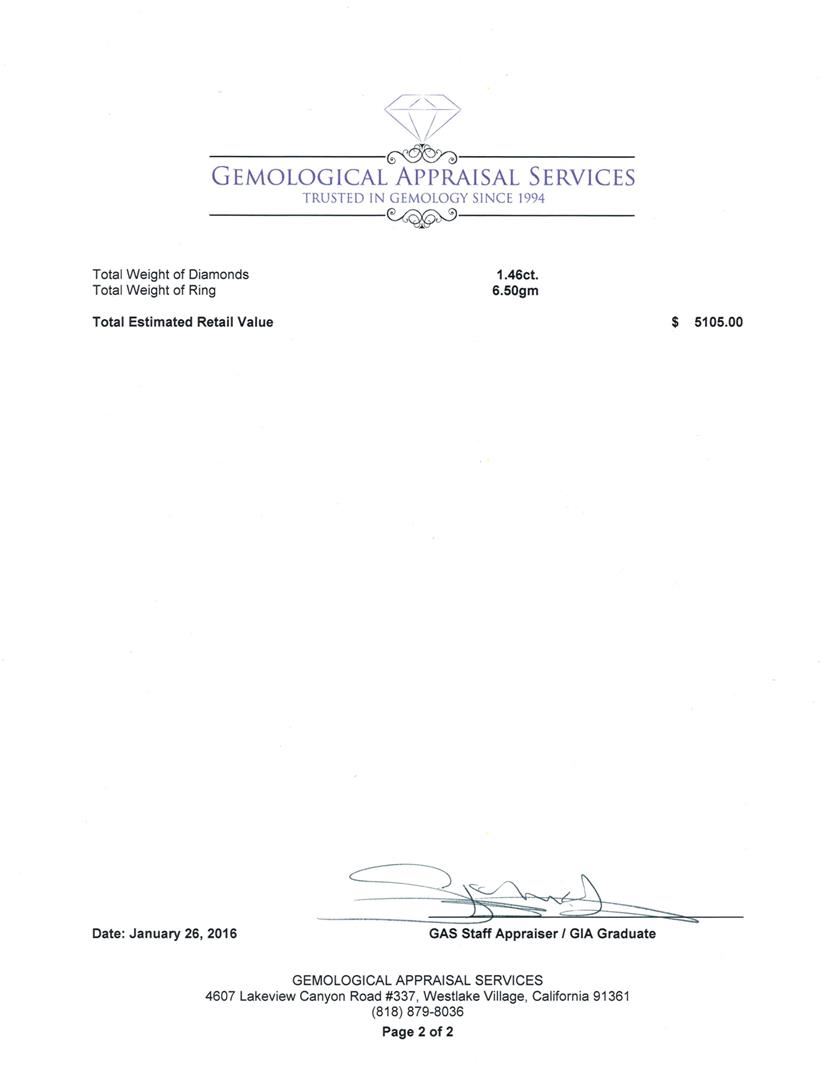 Regarding Appraised Jewelry, Watches and Loose Stones –