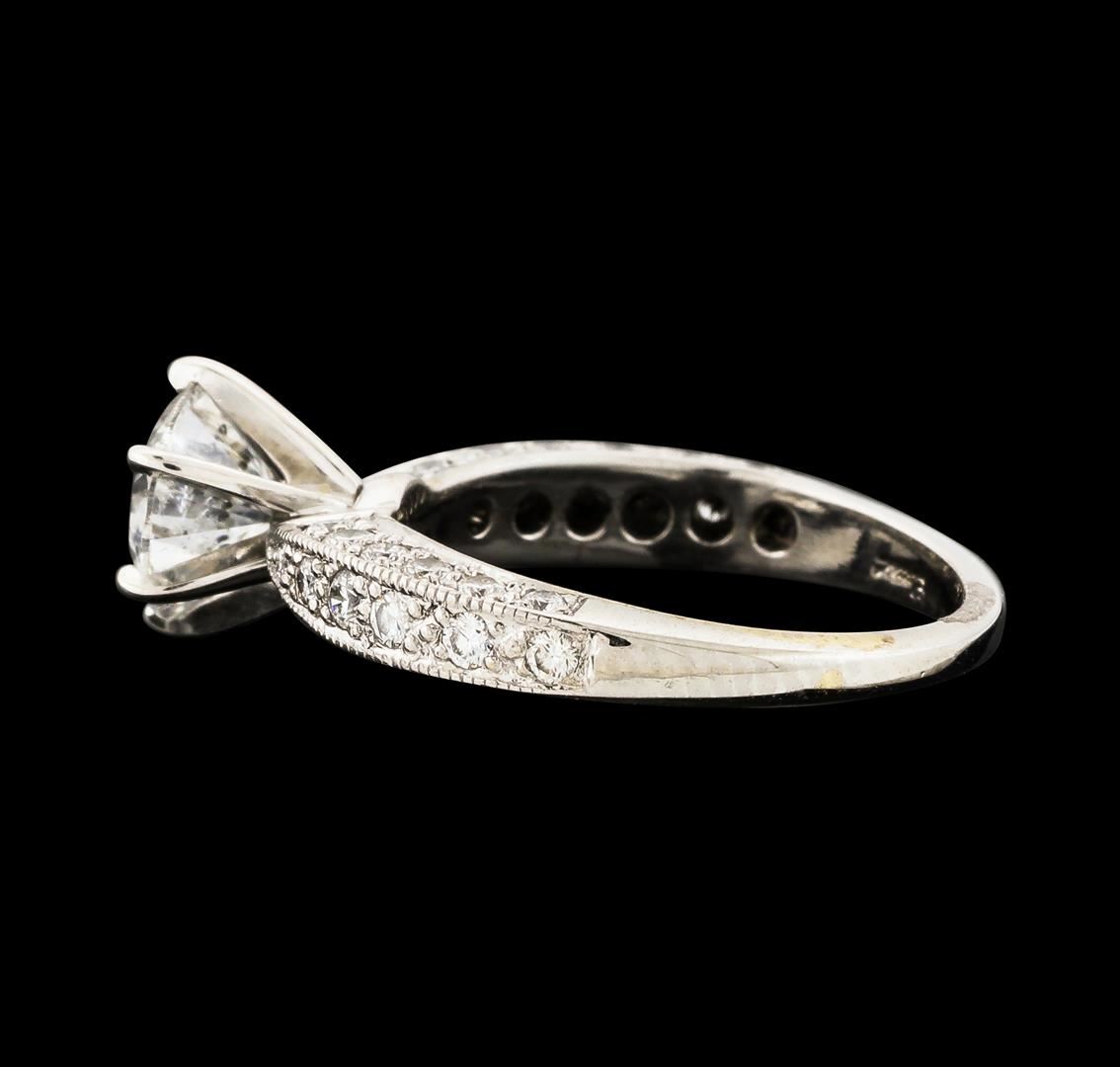 One electronically tested 18KT white gold lady's combination cast & assembled wedding ring with a bright polish with milgrain detailing finish. The featured lady's ring has diamonds set on all three sides going halfway down the shank, which measures 1.66 millimeters wide. Identified with markings of '18K'. Condition is like new, good workmanship. Containing: One prong set round brilliant cut diamond, measuring 6.52 - 6.50 x 4.10mm (depth est.) approximate weight of 1.06ct. Graded in the setting. Clarity I-1. Color: G Cut Very Good Thirty-Six prong set round brilliant cut diamonds, measuring 1.50 - 1.00 x 0.78mm (depth est.) approximate total weight of 36 Stones = 0.40ct. Graded in the setting. Clarity VS-2 to SI-1. Color: H - I Cut Good. Total Weight of Diamonds 1.46ct.. Total Weight of Ring 3.20gm. GAS Appraised at $11,420.00.