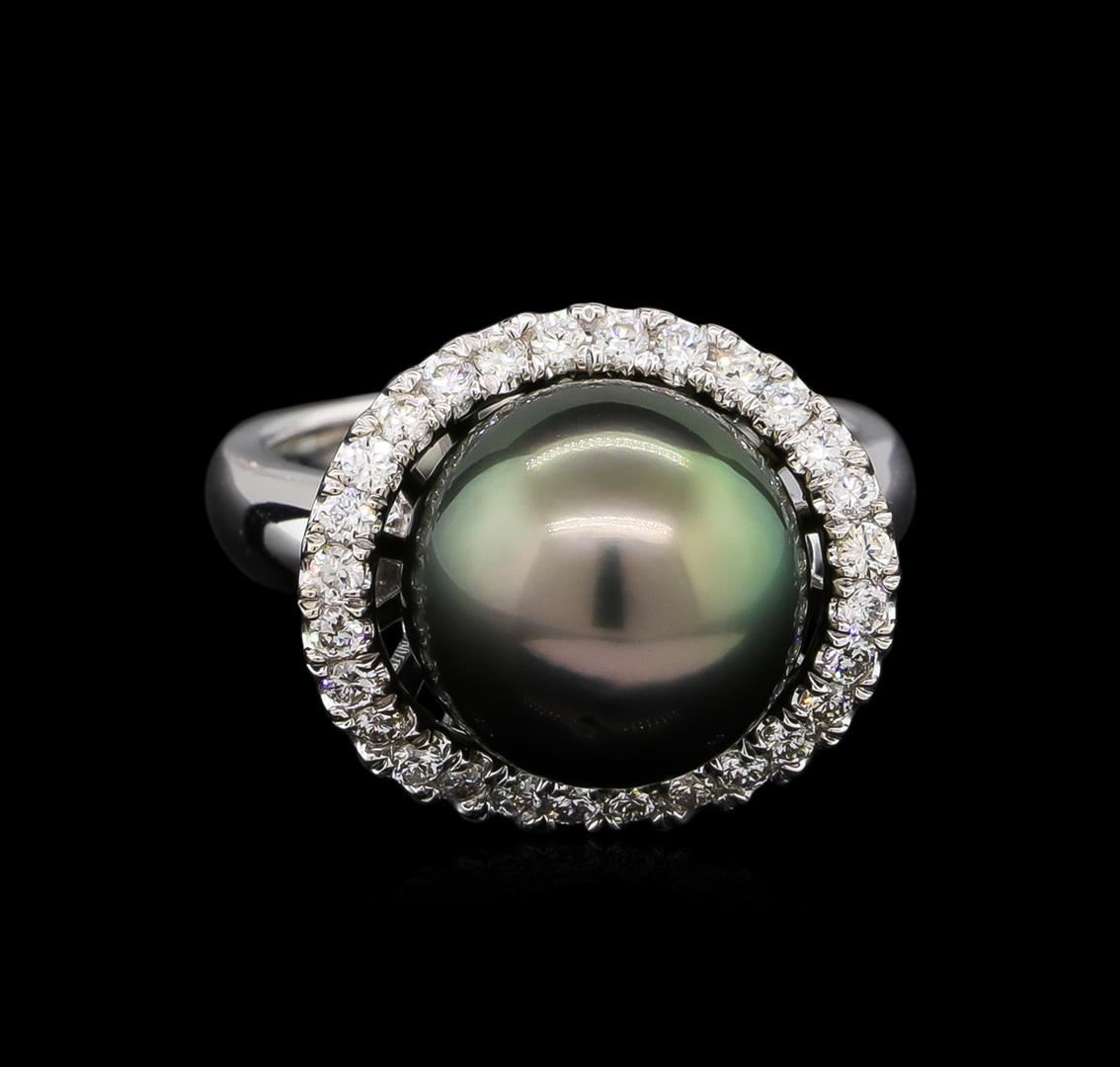 One ring featuring: 14KT white gold weighing 7.26 grams containing one pearl and side diamonds with a total weight of 0.46ct.