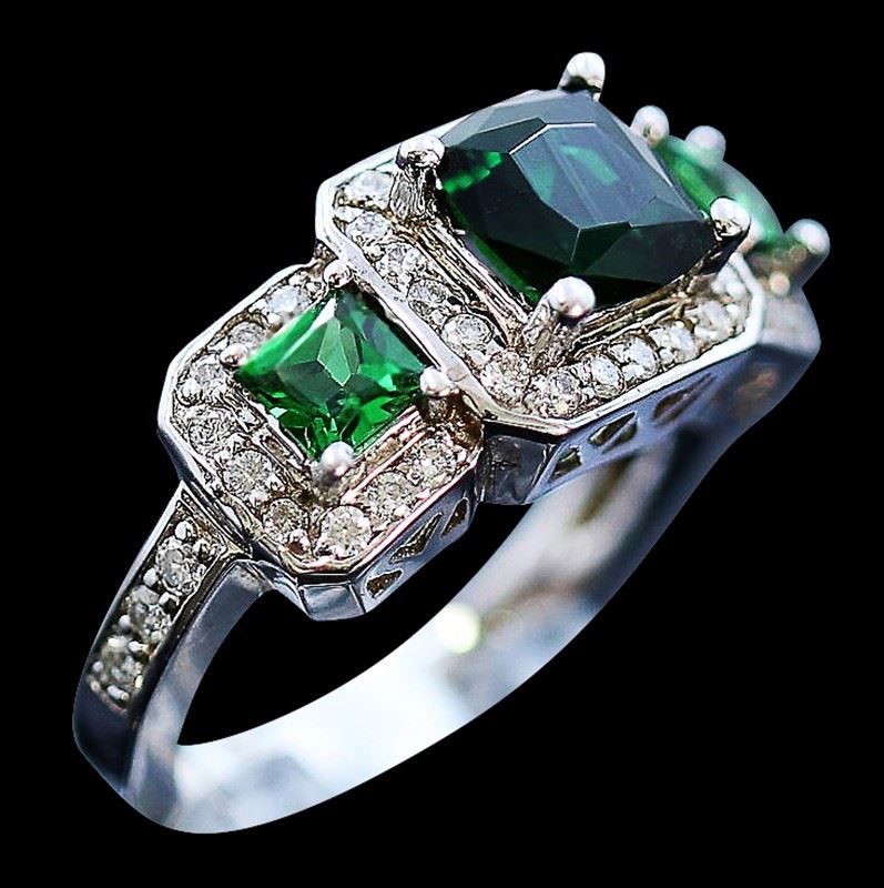 14K W/G RING :5.86gram / Diamond:0.49ct / Tsavorite:0.62ct / Chrome Tourmaline:1.46ct /#GVR1514