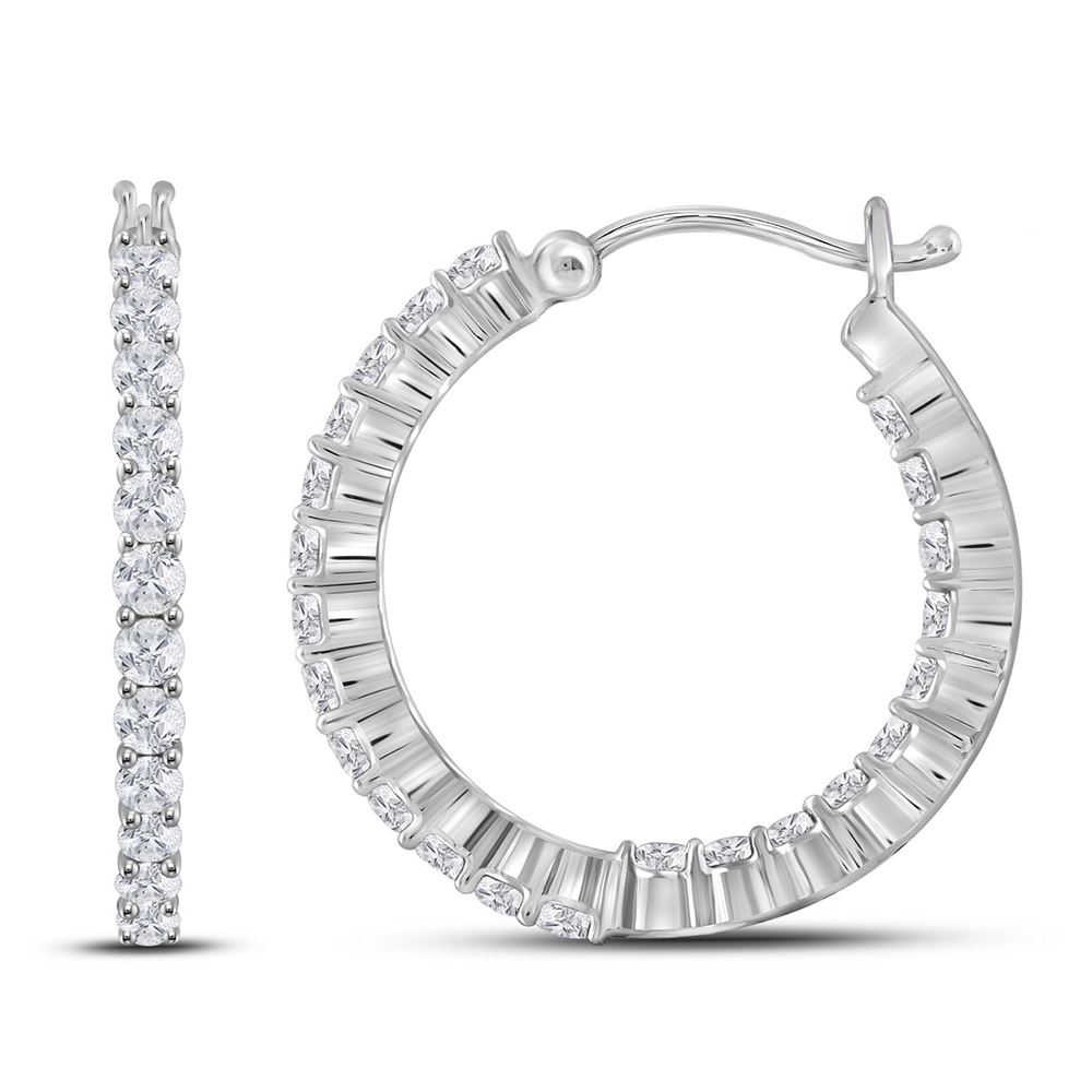 REF-112W5K- SKU: GD117533 ---- 1.47 CTW Diamond Single Row Hoop Earrings 14KT White Gold