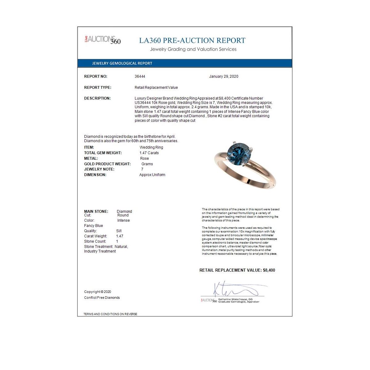 REF-147K3Y - SKU: 36444 ---- 1.47 ctw Certified Intense Blue Diamond Engagment Ring 10k Rose Gold