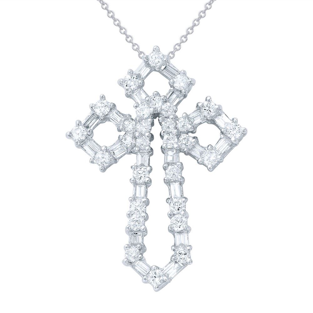 REF-140F7N - JF217158 ---- 1.48 CTW Baguette & White Round Diamond Necklace 18K White Gold