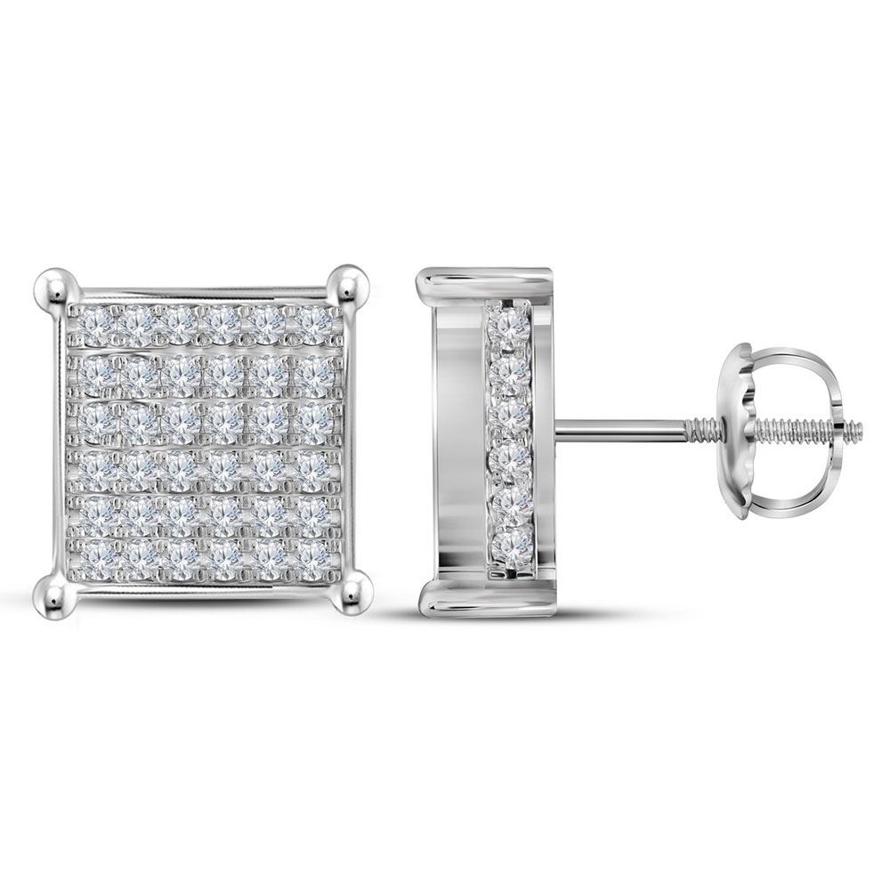 REF-97W4K- SKU: GD112840 ---- 1.48 CTW Diamond Square Cluster Stud Earrings 10KT White Gold