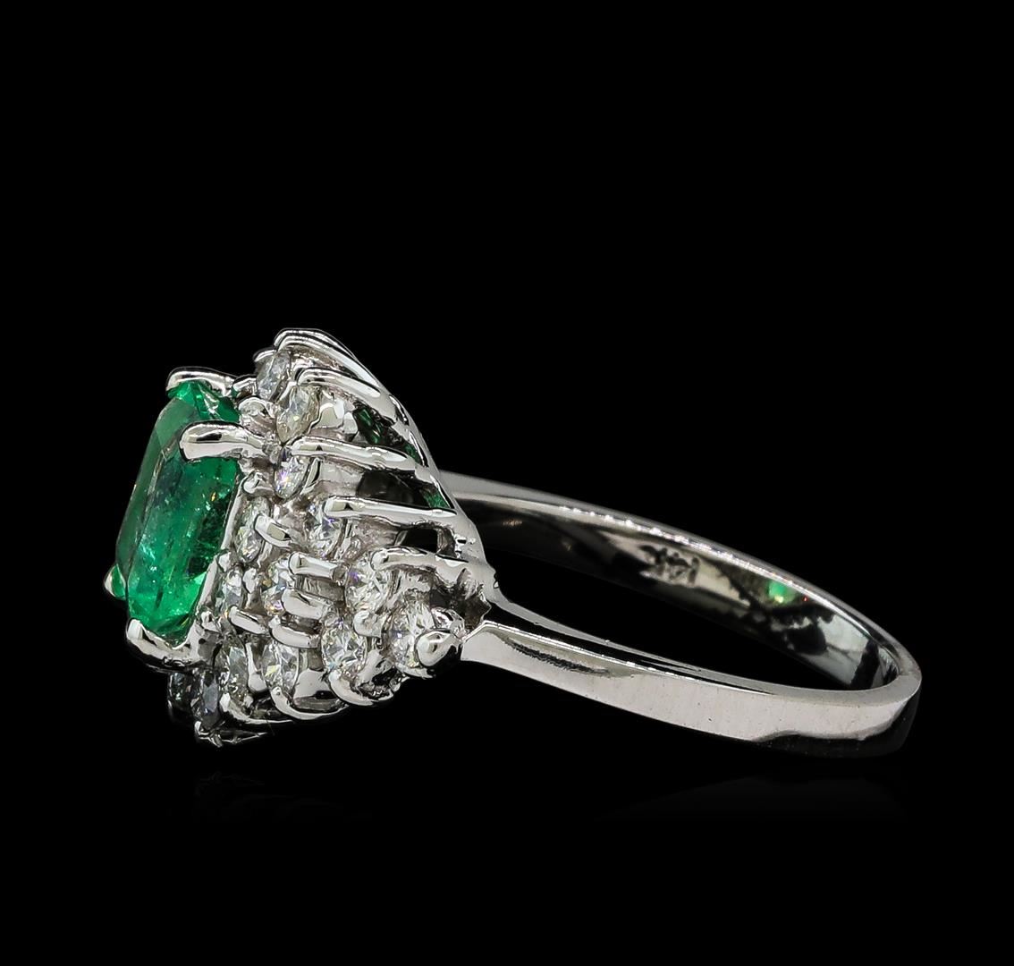 One Emerald and Diamond Ring including: 14KT White Gold with a total weight of 4.25 grams; Emerald with a total weight of 1.48 ct and Diamonds with a total weight of 0.88 ctw.