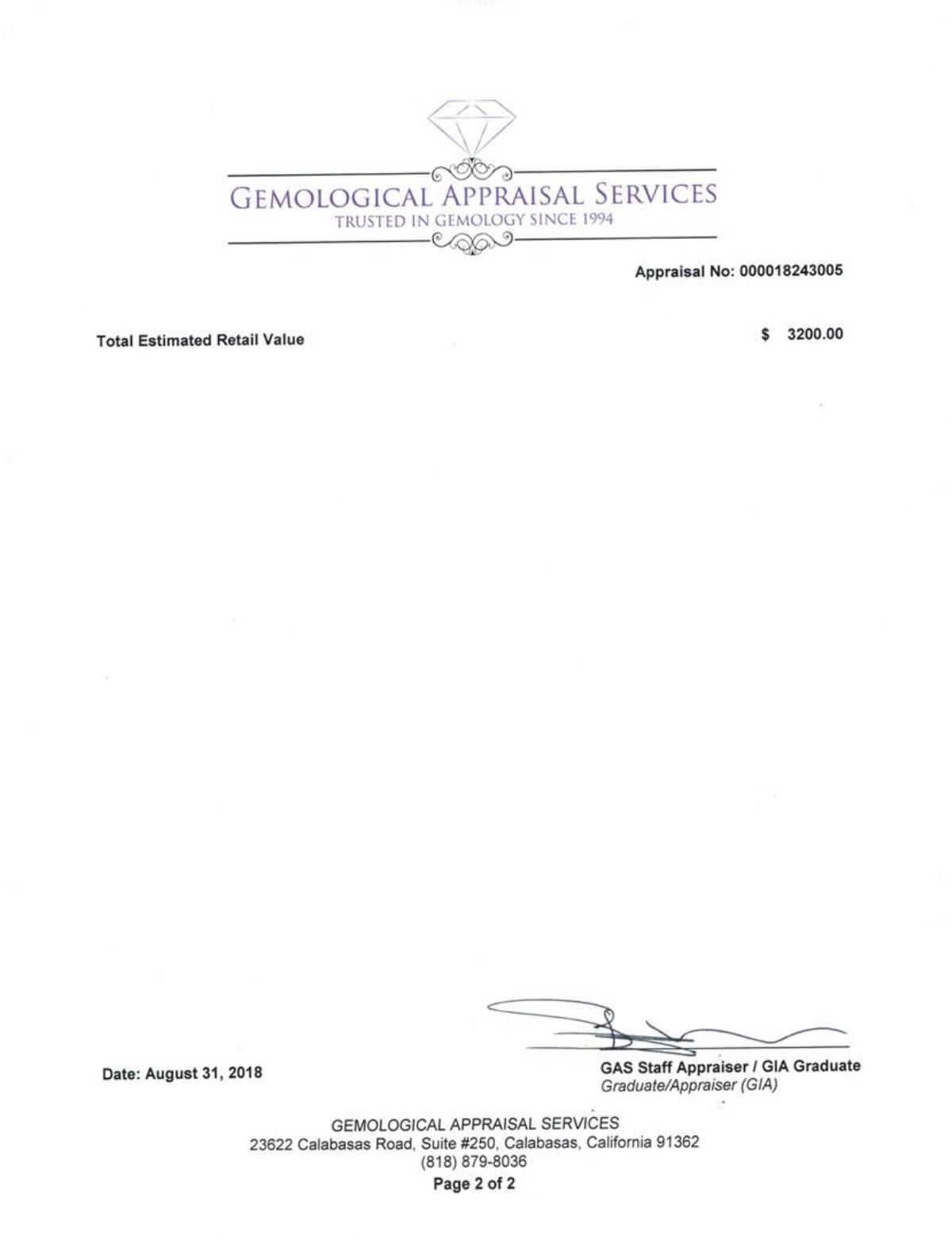 Regarding Appraised Jewelry, Watches and Loose Stones - SAA sends most jewelry, watches, accessories and loose stones out to a third-party for appraisals. All such lots are sold AS IS and may have been worn, been previously repaired, altered, customized (including having been modified with after-market stones or had the bezel changed in its entirety on certain jewelry or watches), or been embellished. For purposes of our actions, the terms custom, modified, or after-market may be used interchangeably. Such wear, repair or changes may display varying levels of evidence. The bidder hereby acknowledges that the absence of any reference to the condition of a lot does not imply the absence of wear, repairs, customization, or defects. While SAA makes every effort to call to the attention of bidders the use of after-market parts in jewelry and watches sold, the use of such parts or stones shall not constitute a warranty or representation that the items are original in their entirety. These modifications, customizations, and alterations may impair the ability of the original manufacturer to repair such item or certify the item as authentic All descriptions and statements related to such lots, including measurement, authorship, source or origin, or other aspects are qualified opines and do not constitute a warranty or representation, and are provided for identification purposes only. Not all Jewelry, watches or loose stones are appraised, and the appraisals are provided for bidders only in certain instances at the discretion of SAA. Our appraisals are conducted by independent third-party appraisal firms. Such firms may be certified GIA Gemologists or have education in the industry or alternative certifications. Appraisals should be used for verification of gemstone and/or metal weight, size, and grade only, not actual value for resale or insurance purposes. Appraisal value should be not considered for actual value, as price varies greatly from retail locations and other merchants in different geographic locations. All Items auctioned by SAA should not be purchased with a view or expectation toward resale for appraisal price given, or to make a profit. The ultimate value for which an item can be resold may vary drastically from the appraisals listed by SAA. All dimensions and weights of such lots are approximate and are consistent with standards and practices in the industry. Condition reports are provided as a service to prospective bidders. Bidders should note that such descriptions are not warranties and that watches may need general service, change of battery or further repair work for which the buyer is solely responsible. Certain watch bands from protected species of animals (i.e. alligator, crocodile) and items made of ivory and tortoise may be subject to restrictions in certain countries.