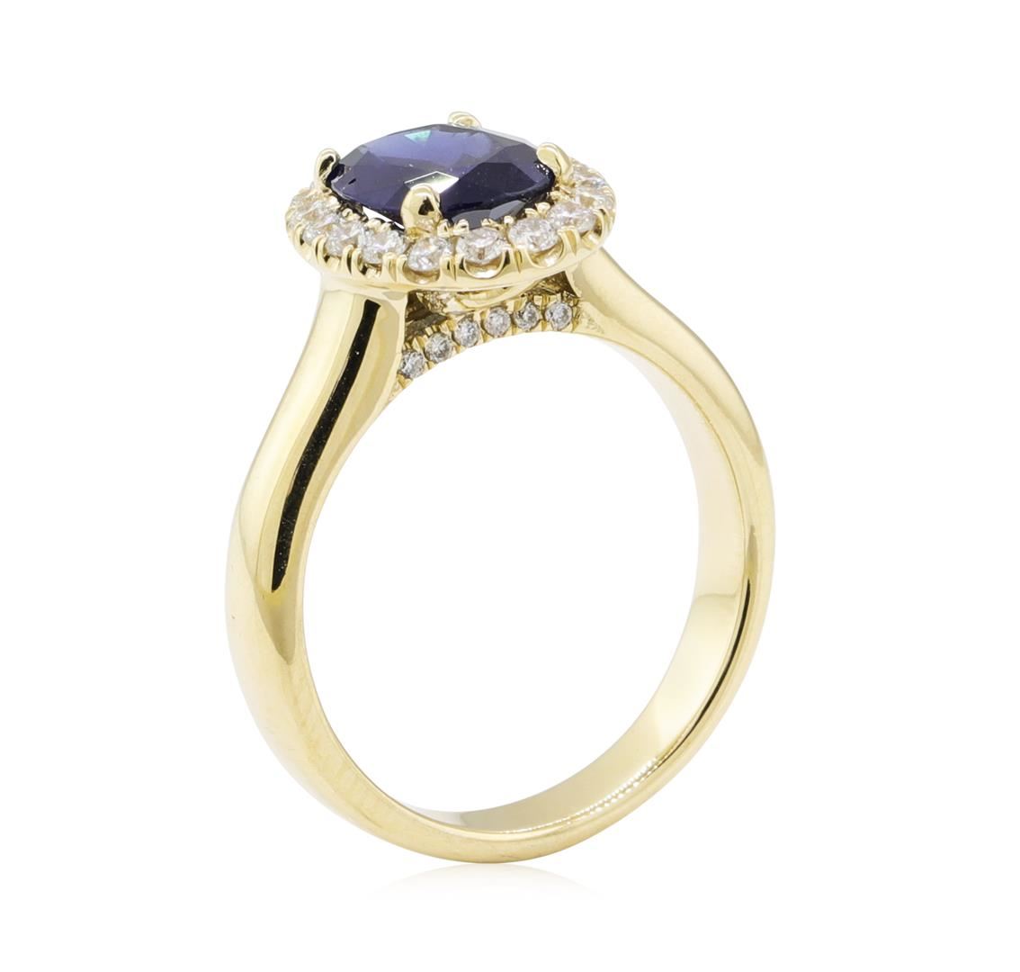 One electronically tested 14KT yellow gold lady's cast fashion ring with a half dome shank with a halo with a bright polish finish. The featured lady's ring has a shank measuring 3.15 millimeters wide. Identified with markings of '14K'. Condition is new,