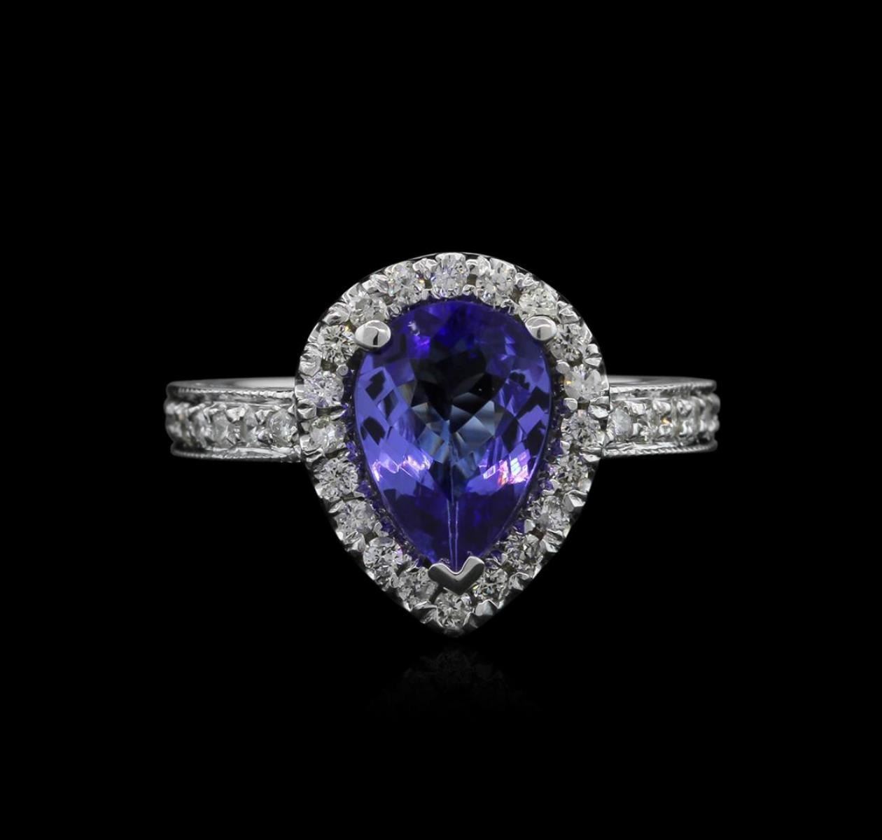 One ring featuring: 14KT white gold weighing 5.15 grams containing one tanzanite center stone with a total weight of 1.48ct and 34 diamonds with a total weight of 0.39ct.