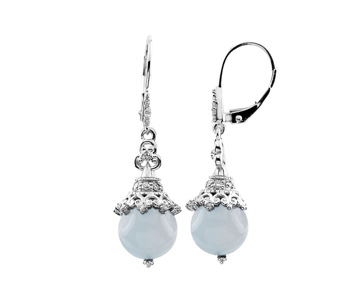 1/4CT DIAMOND/ BLUE CHALCEDONY SILVER EARRINGS (#5662CH-BL) TOTAL CT WEIGHT 12