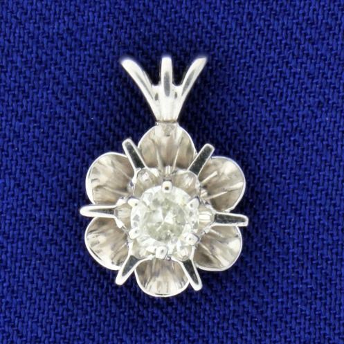 14K white gold, the diamond is I clarity, I color. The pendant is 1/2 inch long. 1.2g