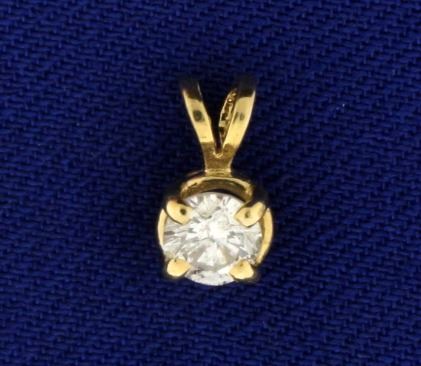 In 14k yellow gold, containing a high quality diamond with a clarity of SI and a color of G. 3/8 inches long. 0.4g.